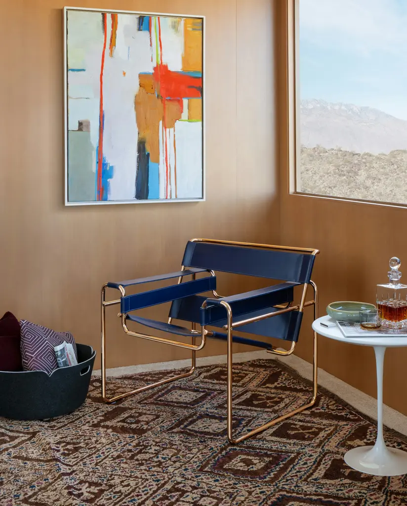 The iconic Wassily Chair is constructed of leather or canvas straps stretched across a tubular steel frame—originally inspired by the bends in a bicycle. It was the first chair of its kind in 1925, and it remains a celebrated symbol of modernism today.In 1925, Marcel Breuer was an apprentice at the Bauhaus when he reduced the classic club chair to its elemental lines and forever altered the future of furniture design. He was inspired to work with tubular steel after hearing the material is “bent like macaroni” to make bicycle frames. “I was very much engaged in the transparency of the form,” said Breuer, who, upon recognizing the potential of this lightweight, sturdy, malleable material, knew he could create the furniture he envisioned. An early prototype intrigued his associate Wassily Kandisky, for whom the chair is now named.