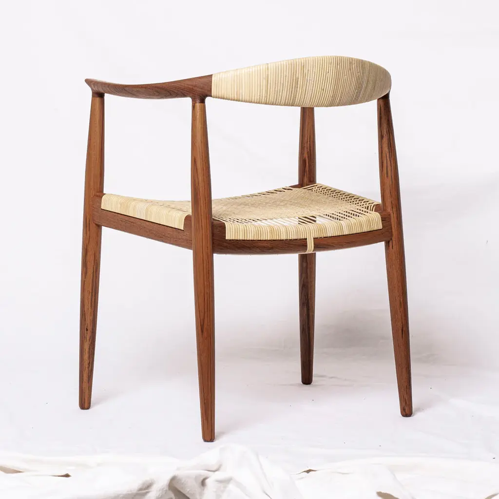 'The Round One' as Wegner referred to it with his usual provincial modesty, is perhaps the most famous Danish piece of furniture of them all - which says a bit. Already a year after the production of this chair startet at Johannes Hansen Møbelsnedkeri A/S, it was noticed by the American magazine for design and architecture, 'Interiors'. This turned out to be the beginning of Danish design's great international breakthrough. Yet, Wegner remained rather unimpressed with his own creation 'They could have made this hundreds of years ago - nothing new here' he uttered at several occasions, referring to the basically very traditional construction. NOTE: This item is made to order by some of the world's best furniture craftsmen using materials that are required to meet PP Mobler's exacting specifications. As such, lead times can vary and are subject to change.