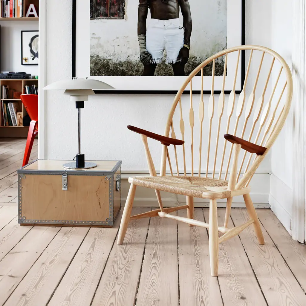 When Finn Juhl first saw this chair he immediately noticed its characteristic back and named it The Peacock Chair - a name which stuck with the chair. Its consciously modern lines are not merely a matter of looks. Rather, the sweeping back with its extravagantly shaped sticks are a feat of ergonomic aesthetics. The flat part of the sticks, which gives it its peacock-like appearance, are placed where the shoulder-blades meet the chair's back. (3) Download 2009 PP Møbler / Hans J. Wegner Catalog NOTE: This item is made to order by some of the world's best furniture craftsmen using materials that are required to meet PP Mobler's exacting specifications. As such, lead times can vary and are subject to change.