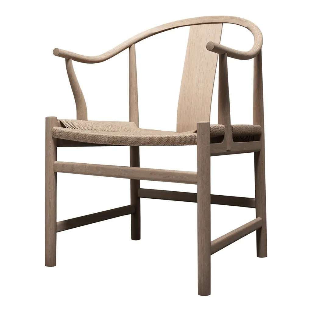 At the Cabinetmakers' Guild's Autumn Exhibition in 1943, Wegner presented his first version of a chair inspired by an old Chinese chair, which he had seen at the Danish Museum of Industrial Arts. Since then, more versions have appeared. The prototype for PP 56 was developed in cooperation with PP Møbler, and went into production in 1989. The Chinese Chair became a cornerstone for Wegner in his early line of designs inspired by foreign cultures. Completing at least seven individual prototypes of Chinese inspired chairs, Wegner worked intensely on modernising the traditional concept, and eventually The Chinese Chair evolved into the Round One, also called The Chair. pp66 was designed in 1945 and became the quintessential modern outcome of Wegner's studies of Chinese chairs. The pp56 version with the upholstered seat for a softer sitting experience was added in 1989. This chair has a high and comfortable back and full length low armrests that fits well under-neath the table top.The center board is moulded with a bend high enough to offer proper support for the lower back. NOTE: This item is made to order by some of the world's best furniture craftsmen using materials that are required to meet PP Mobler's exacting specifications. As such, lead times can vary and are subject to change.