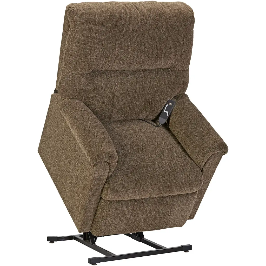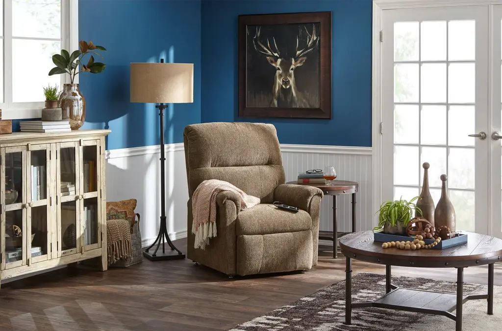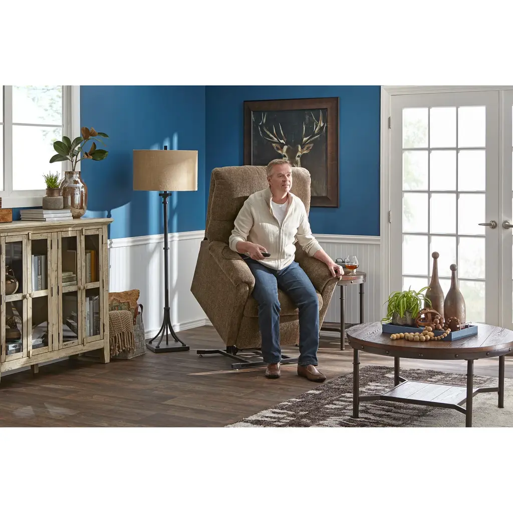 Eliminate the stress and strain of getting up and down with the Wells lift recliner. It has a 2-way lift and recline mechanism, making reclining as easy as sitting. And it's soft and plush, providing all the comfort you could ask for. The WOW seating system is a unique combination of premium springs and gel injected seating foam for superior comfort and durability. The 24-volt motor takes you from a full recline to upright position, controllable with a remote control. Battery backup provides peace of mind. The Wells recliner has a capacity of 350 lbs.