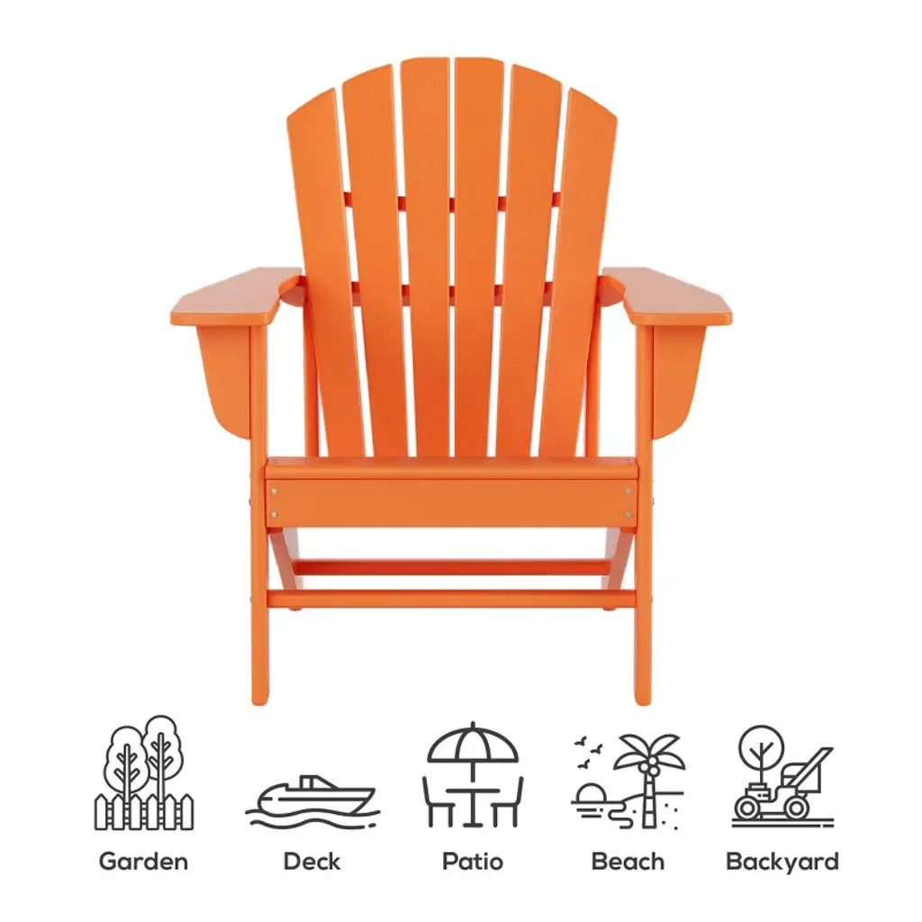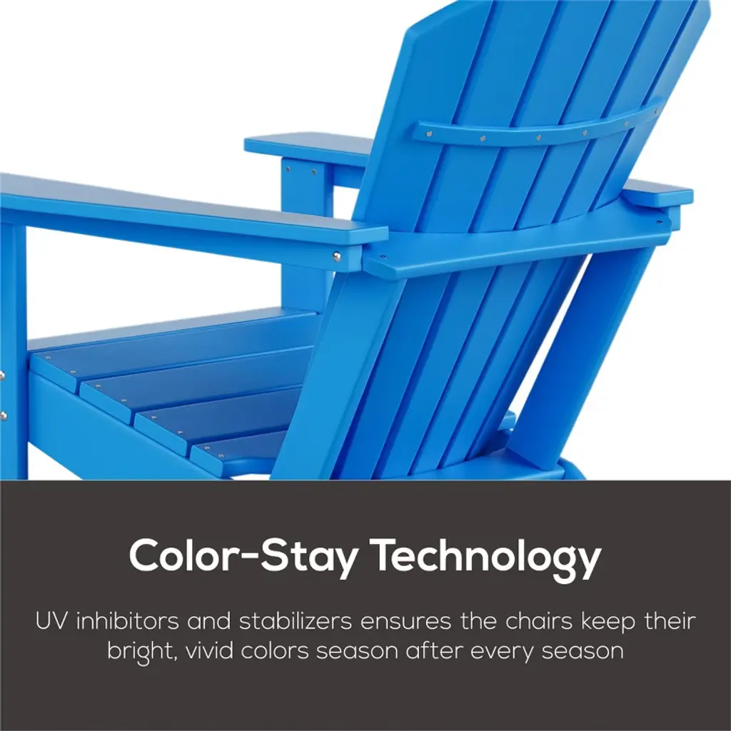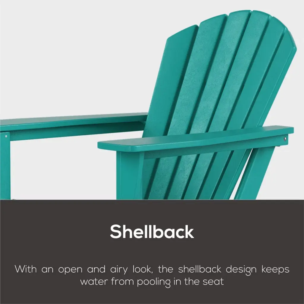 Sit back, relax, and catch a tan or enjoy some family time on this stunningly crafted Adirondack chair. Designed with comfort and style in mind, with a broad armrest for extra armroom, a curved reclined seashell backrest for a more comfortable seat, and a high back that helps reduce tension on your back. Constructed from a durable and solid HDPE material that is weather resistant and, unlike wood, won't crack, chip, peel, or splinter. A UV-protective coating prevents fading, keeping the colors vibrant and amazing all year long. This attractive chair is easy to clean, making it perfect for the outdoors, and is sure to make your backyard the place to be.While we strive to accurately represent product colors, please be aware that actual colors may vary slightly due to individual screen settings and lighting conditions. FeaturesSolid HDPE constructionStain resistant to ensure that charming color stays season longMade of weather-resistant material that can survive the outdoor elementsUV and fade resistantWide armrests and curved backrestSimple to assembleEnhanced sink-in comfort with sloped seat, armrests and wide backrestDetails:Product Type: Adirondack ChairsWhat's Included: (1) Adirondack ChairAdirondack ChairDimensions: 31.75" W x 33.5" D x 36.5" HWeight: 42 lbs.Seat Width: 22"Seat Depth: 20"Seat Height: 15"Weight Capacity: 450 lbs.