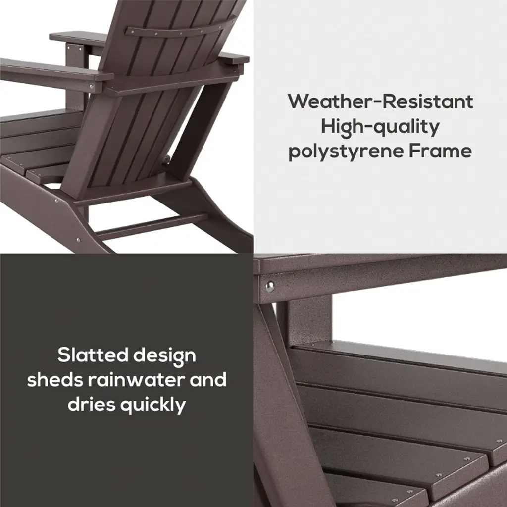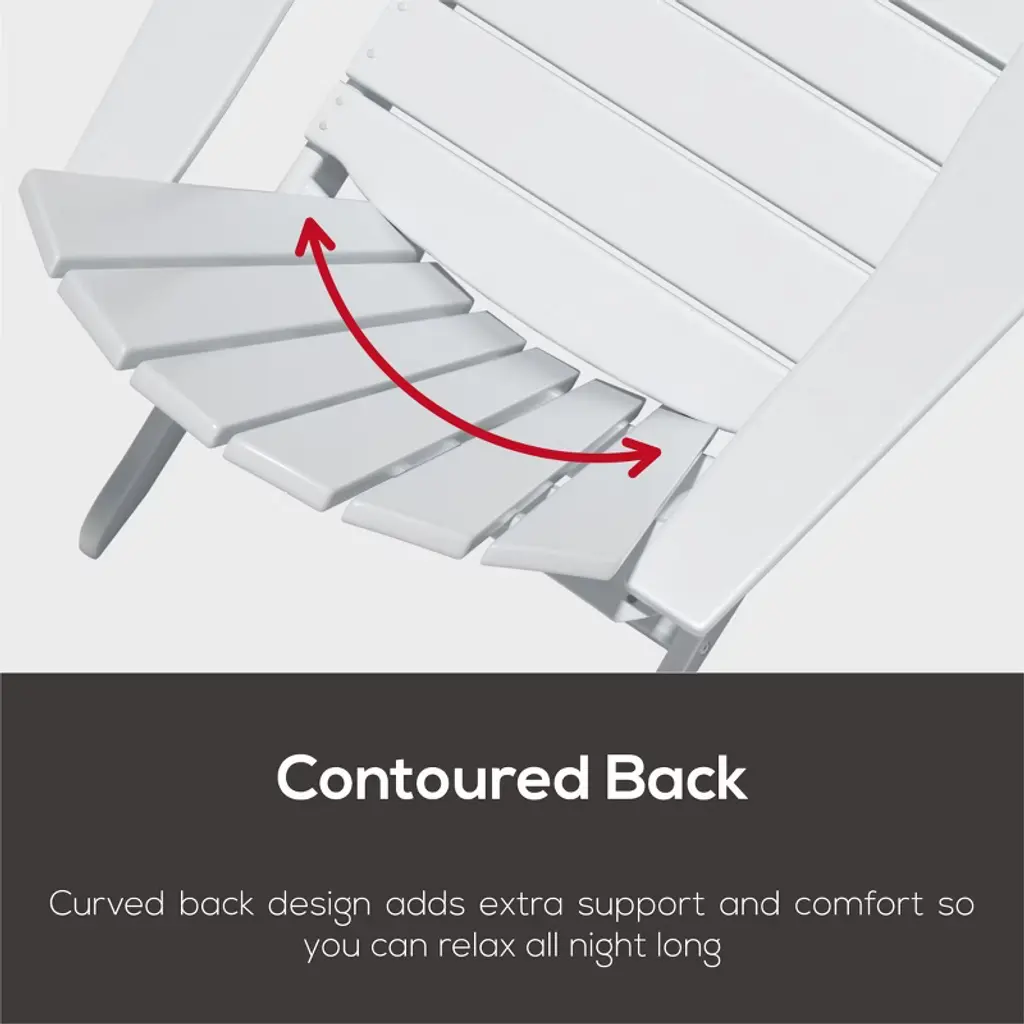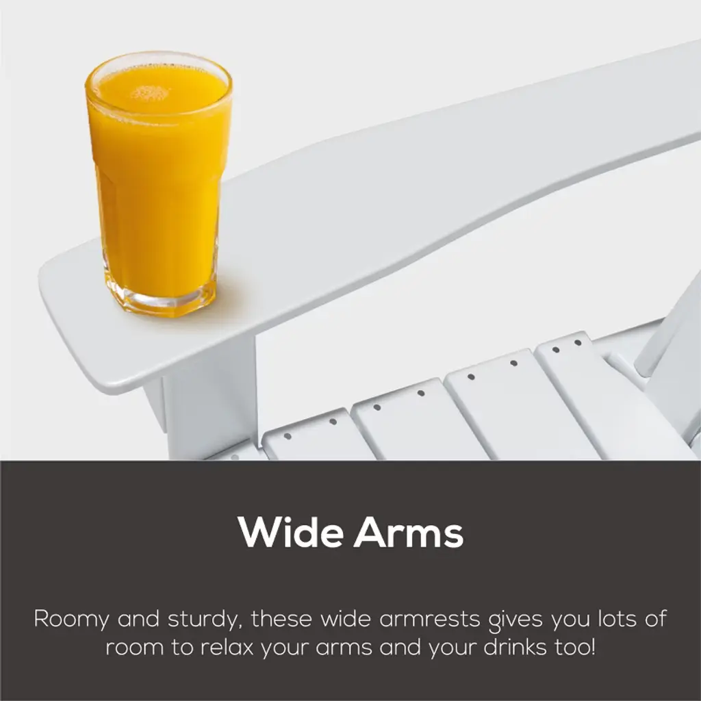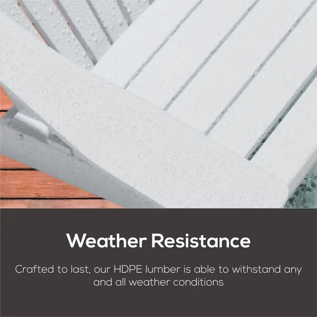 Sit back, relax, and catch a tan or enjoy some family time on this stunningly crafted Adirondack chair. Designed with comfort and style in mind, with a broad armrest for extra armroom, a curved reclined seashell backrest for a more comfortable seat, and a high back that helps reduce tension on your back. Constructed from a durable and solid HDPE material that is weather resistant and, unlike wood, won't crack, chip, peel, or splinter. A UV-protective coating prevents fading, keeping the colors vibrant and amazing all year long. This attractive chair is easy to clean, making it perfect for the outdoors, and is sure to make your backyard the place to be.While we strive to accurately represent product colors, please be aware that actual colors may vary slightly due to individual screen settings and lighting conditions. FeaturesSolid HDPE constructionStain resistant to ensure that charming color stays season longMade of weather-resistant material that can survive the outdoor elementsUV and fade resistantWide armrests and curved backrestSimple to assembleEnhanced sink-in comfort with sloped seat, armrests and wide backrestDetails:Product Type: Adirondack ChairsWhat's Included: (1) Adirondack ChairAdirondack ChairDimensions: 31.75" W x 33.5" D x 36.5" HWeight: 42 lbs.Seat Width: 22"Seat Depth: 20"Seat Height: 15"Weight Capacity: 450 lbs.