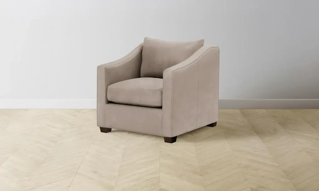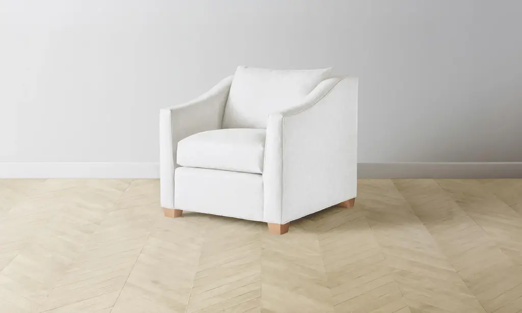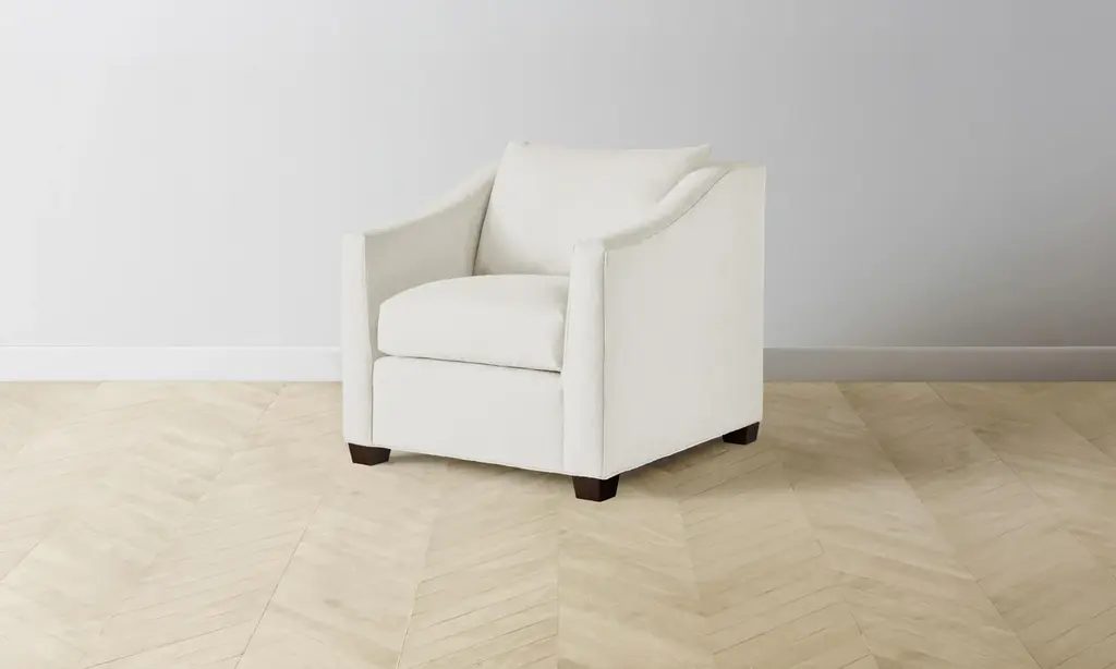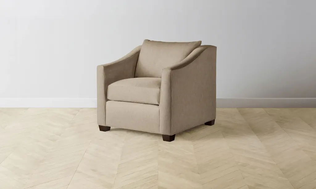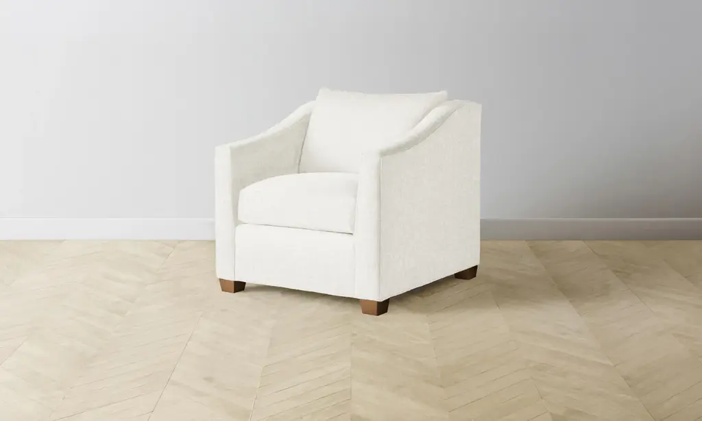 Clean lines and cozy box cushions make the Weybridge chair an instant classic. Tapered wood legs and simple track arms grace the transitional silhouette. Soft and supportive cushioning offers plush, cloud-like comfort, with a foam core surrounded by a blend of fiber, down, and feather fill. Whether styled on its own or as a pair, this inviting chair is an easy addition to any seating area. Choose from a variety of upholstery options, including linen, velvet, and performance fabrics.