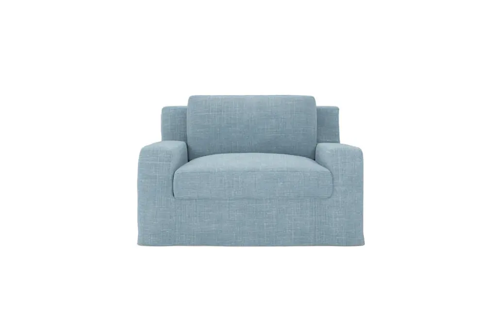 Clean lines and cozy box cushions make the Weybridge chair an instant classic. Tapered wood legs and simple track arms grace the transitional silhouette. Soft and supportive cushioning offers plush, cloud-like comfort, with a foam core surrounded by a blend of fiber, down, and feather fill. Whether styled on its own or as a pair, this inviting chair is an easy addition to any seating area. Choose from a variety of upholstery options, including linen, velvet, and performance fabrics.