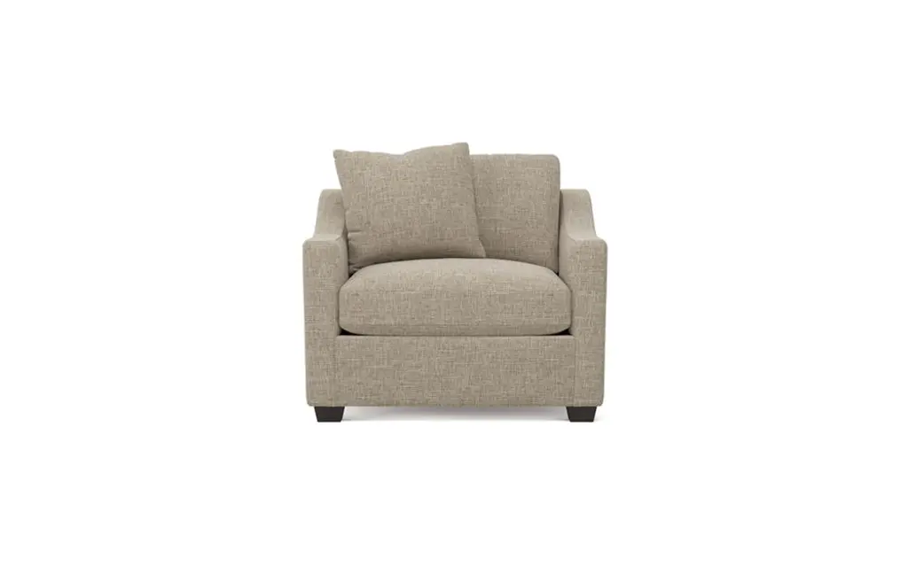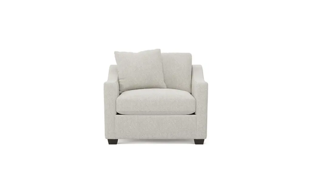 Clean lines and cozy box cushions make the Weybridge chair an instant classic. Tapered wood legs and simple track arms grace the transitional silhouette. Soft and supportive cushioning offers plush, cloud-like comfort, with a foam core surrounded by a blend of fiber, down, and feather fill. Whether styled on its own or as a pair, this inviting chair is an easy addition to any seating area. Choose from a variety of upholstery options, including linen, velvet, and performance fabrics.