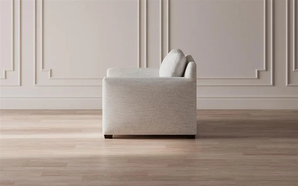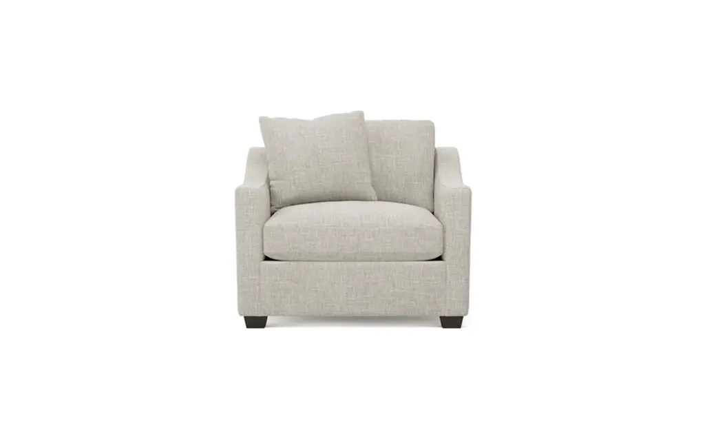 Clean lines and cozy box cushions make the Weybridge chair an instant classic. Tapered wood legs and simple track arms grace the transitional silhouette. Soft and supportive cushioning offers plush, cloud-like comfort, with a foam core surrounded by a blend of fiber, down, and feather fill. Whether styled on its own or as a pair, this inviting chair is an easy addition to any seating area. Choose from a variety of upholstery options, including linen, velvet, and performance fabrics.