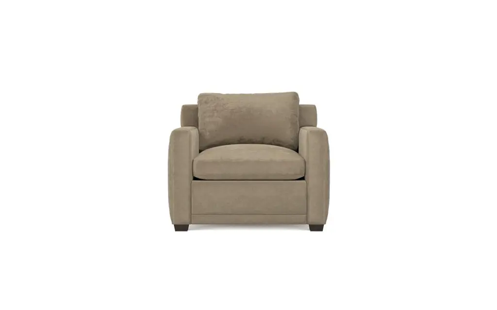 Clean lines and cozy box cushions make the Weybridge chair an instant classic. Tapered wood legs and simple track arms grace the transitional silhouette. Soft and supportive cushioning offers plush, cloud-like comfort, with a foam core surrounded by a blend of fiber, down, and feather fill. Whether styled on its own or as a pair, this inviting chair is an easy addition to any seating area. Choose from a variety of upholstery options, including linen, velvet, and performance fabrics.