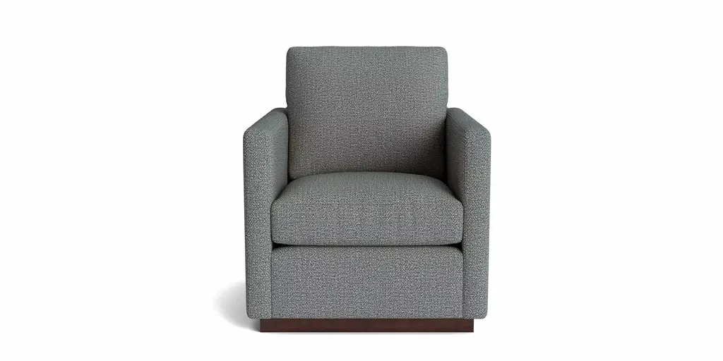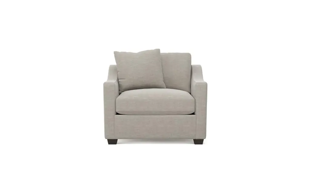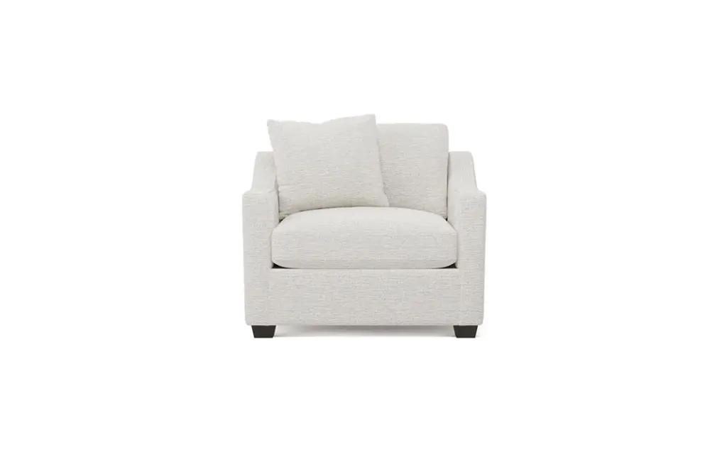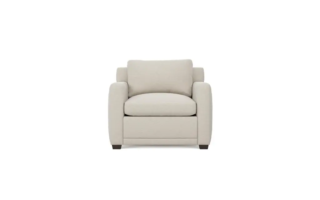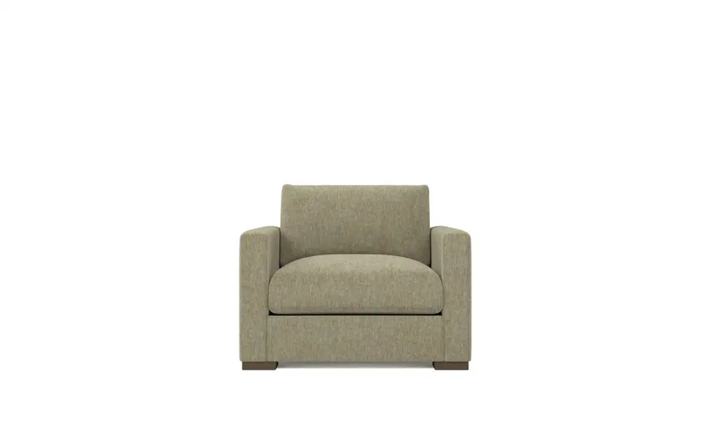 Clean lines and cozy box cushions make the Weybridge chair an instant classic. Tapered wood legs and simple track arms grace the transitional silhouette. Soft and supportive cushioning offers plush, cloud-like comfort, with a foam core surrounded by a blend of fiber, down, and feather fill. Whether styled on its own or as a pair, this inviting chair is an easy addition to any seating area. Choose from a variety of upholstery options, including linen, velvet, and performance fabrics.