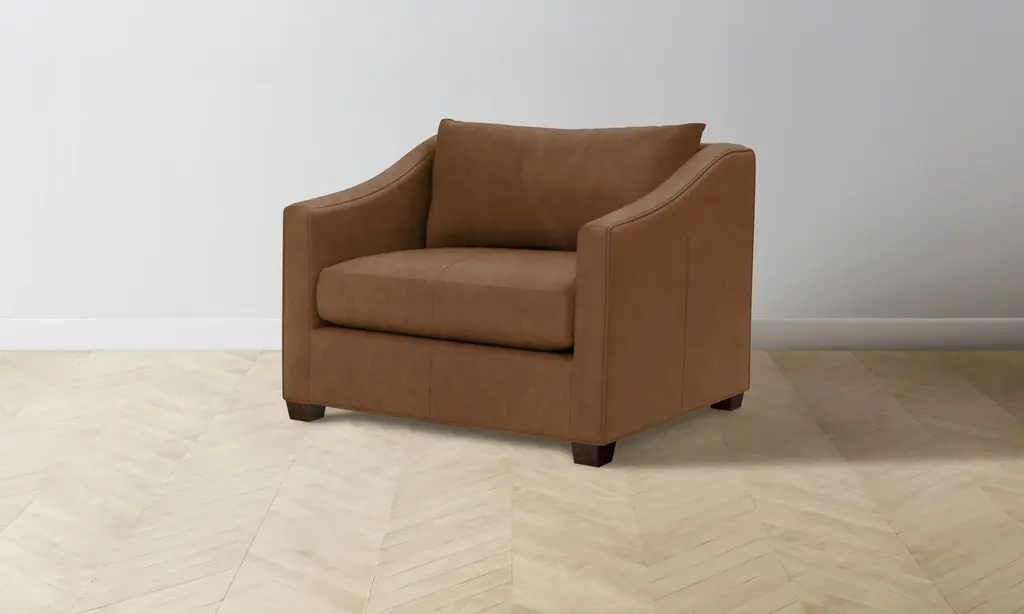 Clean lines and cozy box cushions make the Weybridge chair an instant classic. Tapered wood legs and simple track arms grace the transitional silhouette. Soft and supportive cushioning offers plush, cloud-like comfort, with a foam core surrounded by a blend of fiber, down, and feather fill. Whether styled on its own or as a pair, this inviting chair is an easy addition to any seating area. Choose from a variety of upholstery options, including linen, velvet, and performance fabrics.