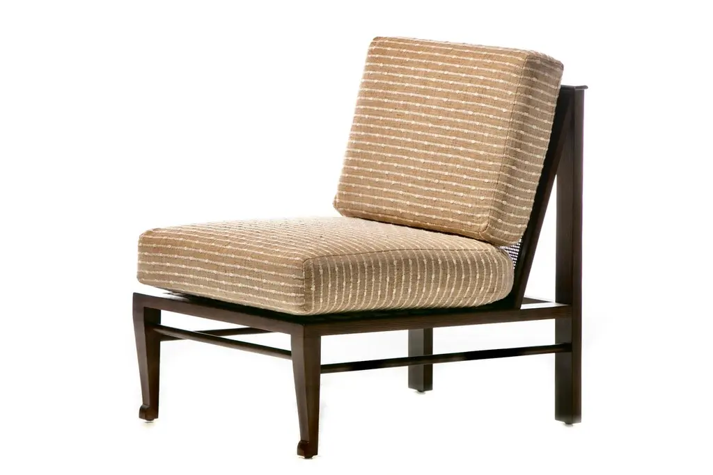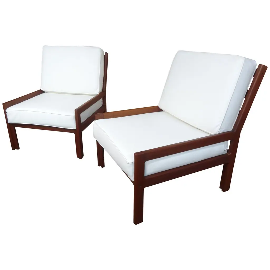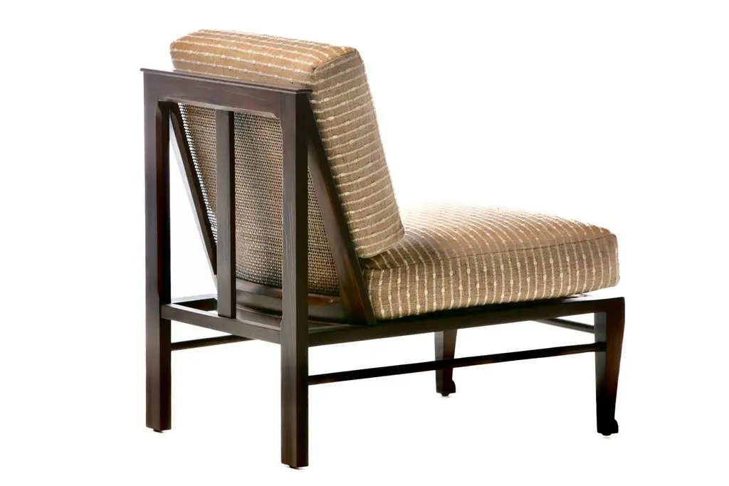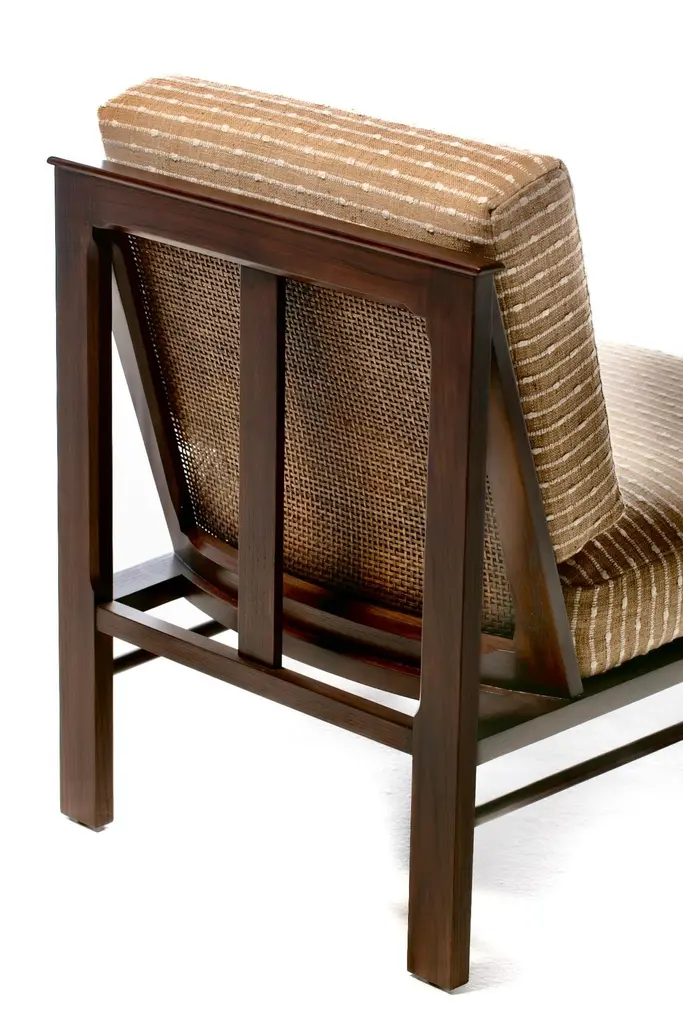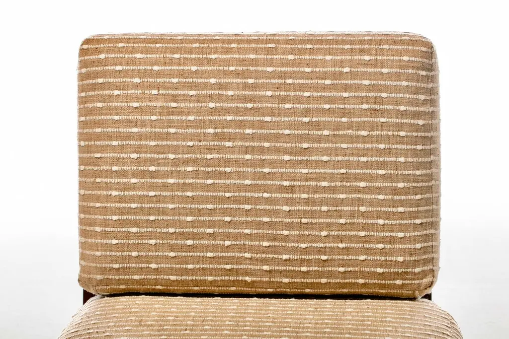 Rare pair of fully restored Mid Century Modern Thebes Chairs by William Pahlmann in new woven linen upholstery with minimalist linear design. Described as a "Design Legend" by Architectural Digest, William Pahlmann was inspired by ancient cultures and styles. He incorporated some of those ancient elements into mid century modern furniture. That eclectic mix made his pieces stand out from other mid century modern designs of the period. These Thebes chairs showcase Pahlmann's unique talent and merge modern mid century lines with Egyptian elements. Elegant. Affluent. Stately profile features clean mid century modern lines finished with Egyptian feet, an ancient style first enjoyed by Pharaohs. Comfortable wide seat and back cushions newly upholstered in linen. The back cushion is removable and reveals a cane back that's perfect for warmer climates. A wonderful acquisition for any collector of mid century modern pieces or aficionados of beautiful furniture. Want to see more beautiful things? Scroll down below and click "View All From Seller" or favorite our shop to get your 1stDibs on our new inventory.