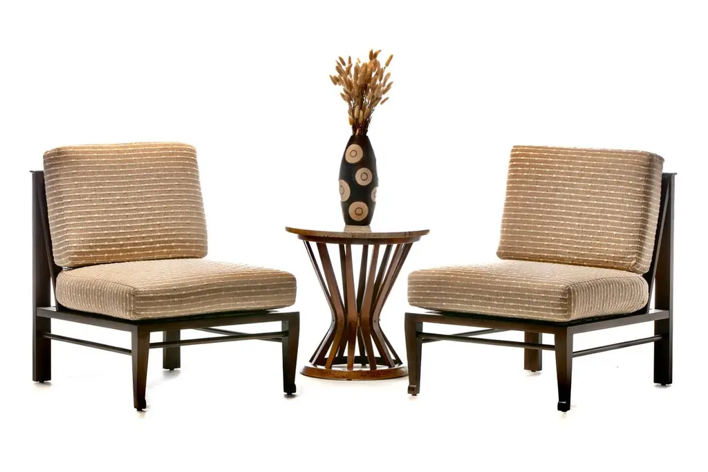 William Pahlmann Thebes Chairs In New Embroidered Linen Upholstery, Circa 1964