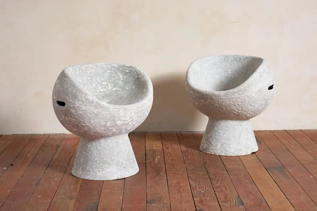 Rare pod chairs by Willy Guhl Great sculptural form with patina'd concrete Sold separately - matching pair available