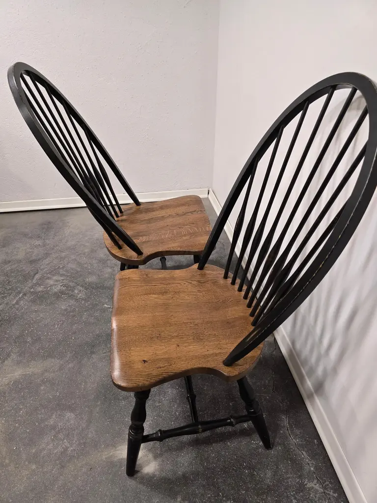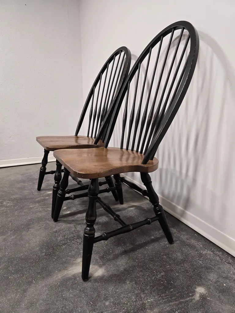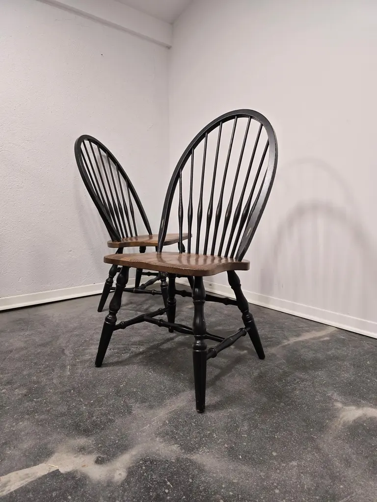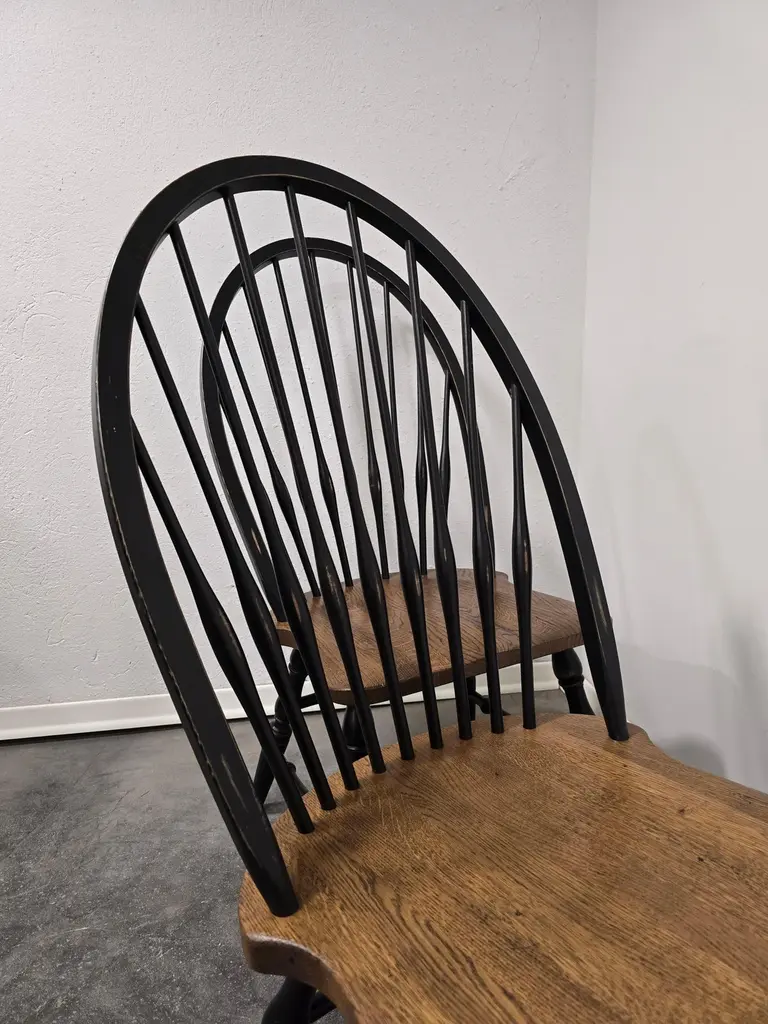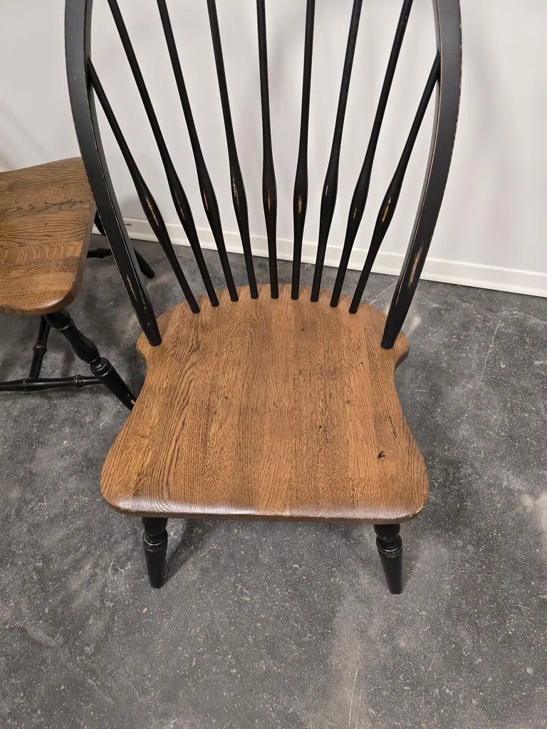 Windsor-style chair from 2004, made in Slovenia by Lip Radomlje (labeled). These chairs are truly beautiful and sturdy, a high-quality piece made from oak wood. The chairs age beautifully, with a beautiful patina. The price is for one chair.