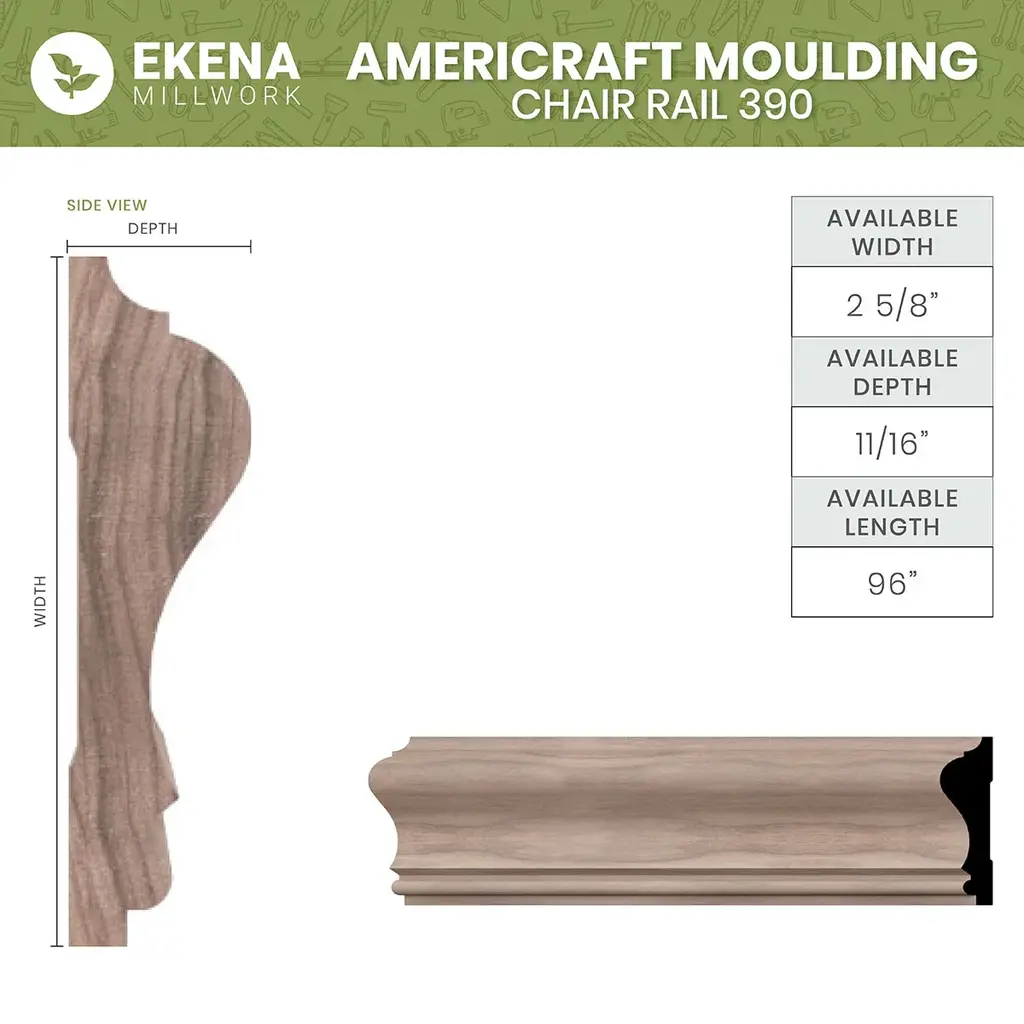 Wm390 11/16-In D X 2-5/8-In W X 96-In L Americraft Solid Hardwood Stain Grade Chair Rail Moulding - Walnut