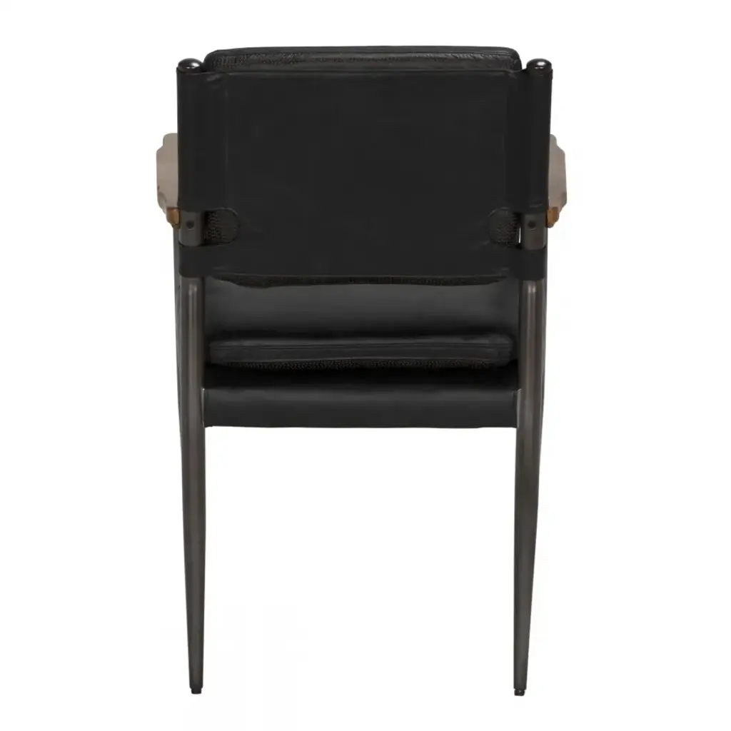 Add a touch of industrial chic to your space with the Wooster Chair. This stylish chair is constructed from a blend of industrial steel, walnut, and top-grain leather, featuring a Steel Gray powder coat, Dark Walnut, and Ebony Black finish.