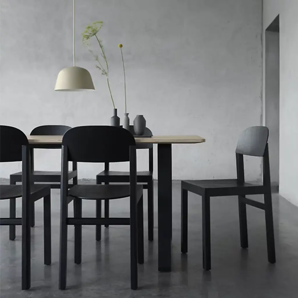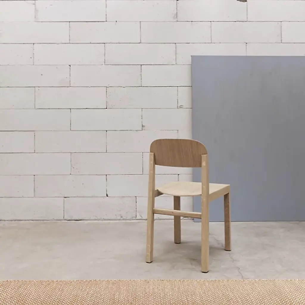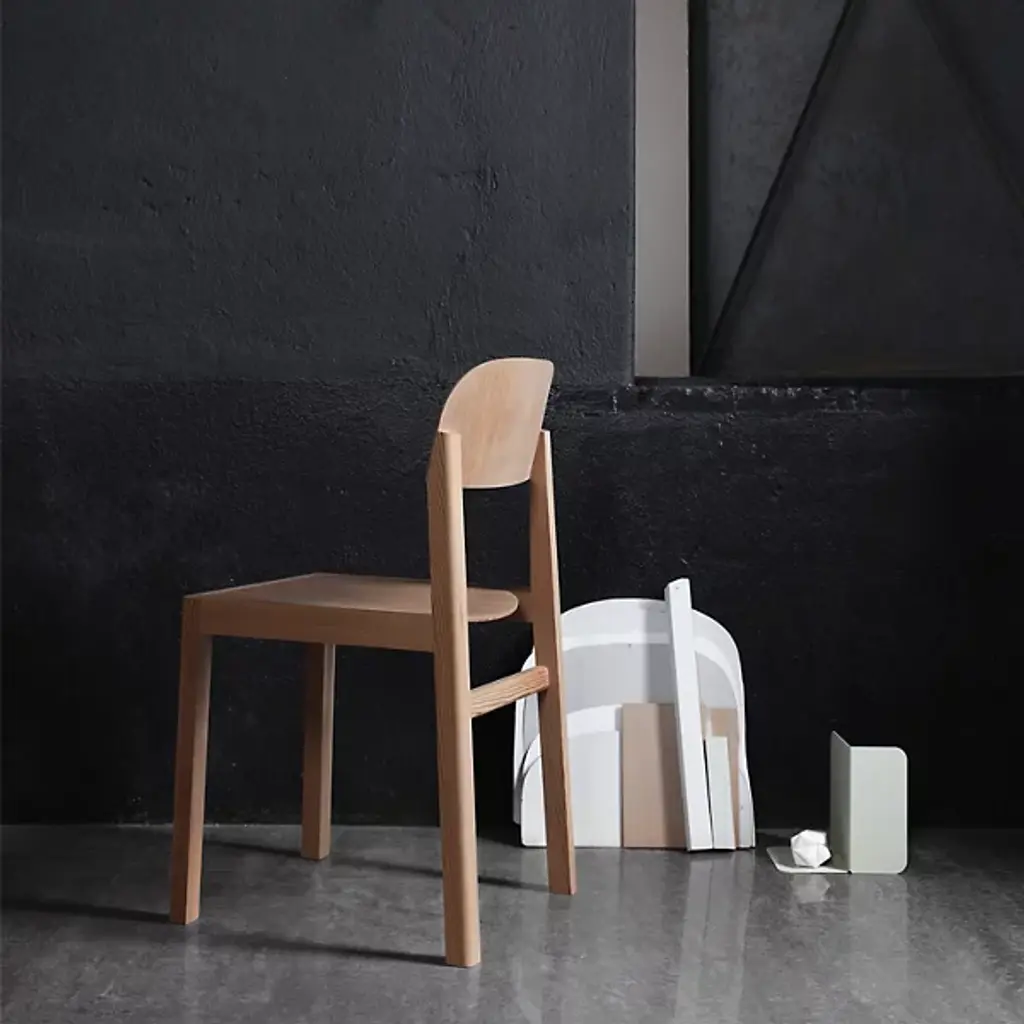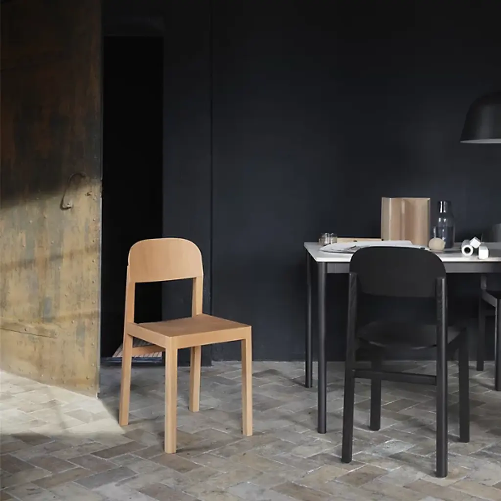 Refined Scandinavian design with a playful personality. The Workshop Chair from Muuto mixed business with pleasure as a balanced form and function design that delivers a tidy silhouette. The chair is a tidy addition to the modern or contemporary space. Cecilie Manz’s creates the piece with simplicity in mind. Here push towards pure, aesthetic, and functional objects shown in the chair’s graphic silhouette. Here a group of legs stand up straight to anchor one to the floor. The back and seat rest feature low-key curves that make the piece feel light and cozy. A top to bottom wooden construction adds to the sense of permanence of the piece.