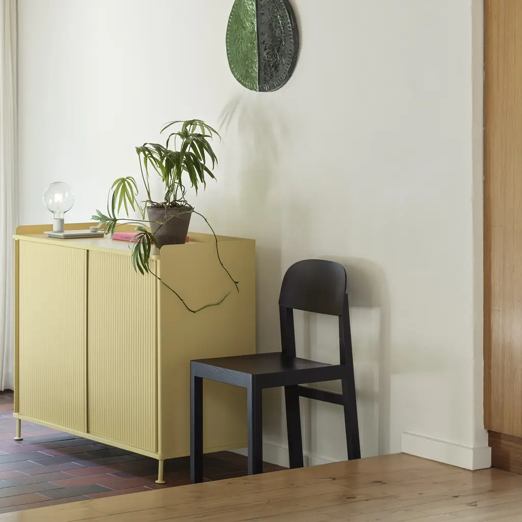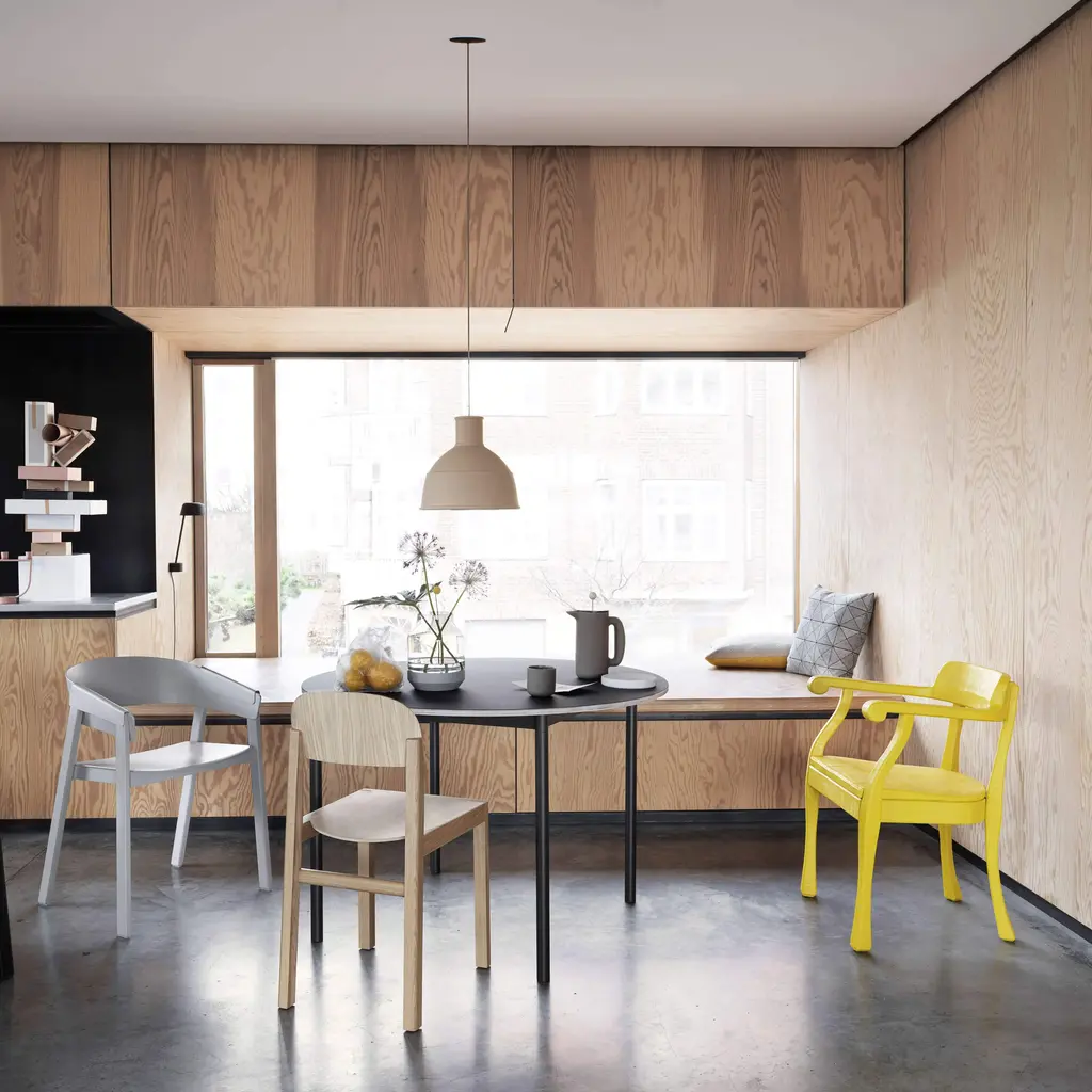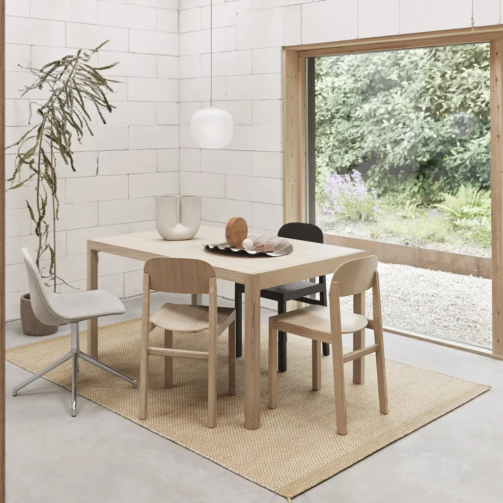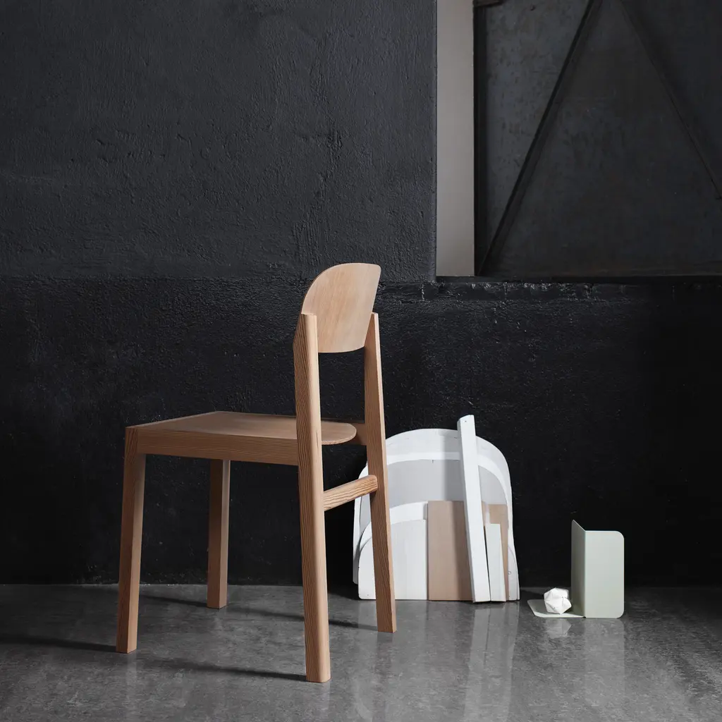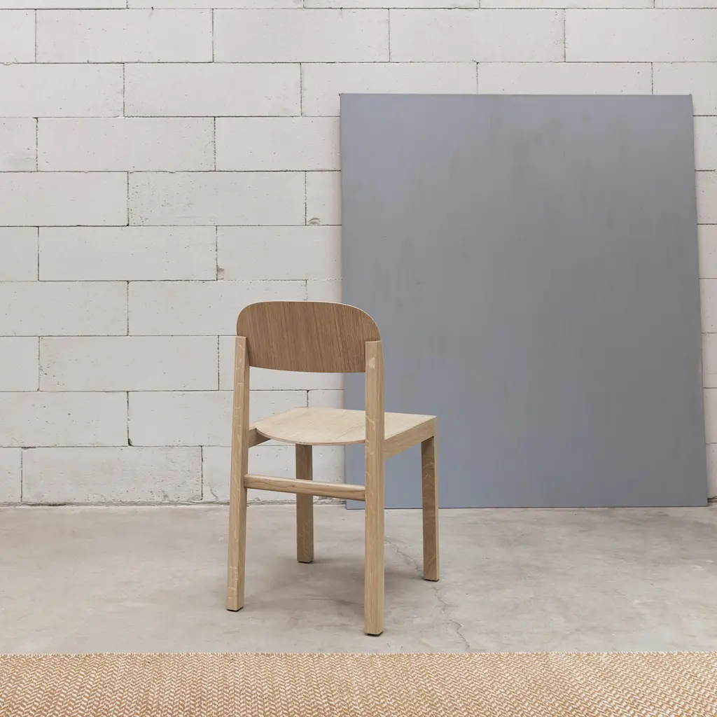The archetypal chair at its most fundamental. Refined joints are among the celebrated yet understated details of craftsmanship in this aptly called Workshop Chair by celebrated industrial designer Cecilie Manz for Danish house Muuto. The Oregon Pine or oak wood legs and veneer-skinned back and seat reveal the visible wood grains.