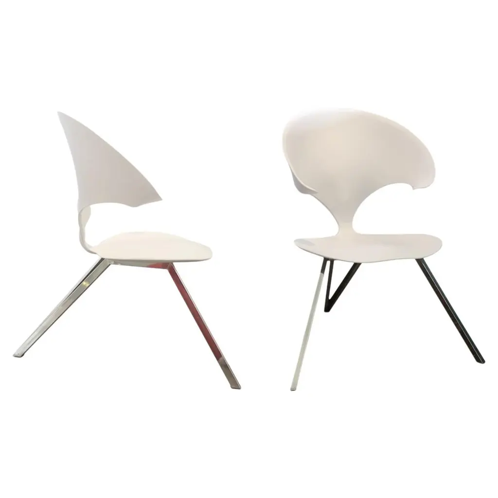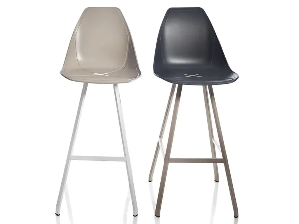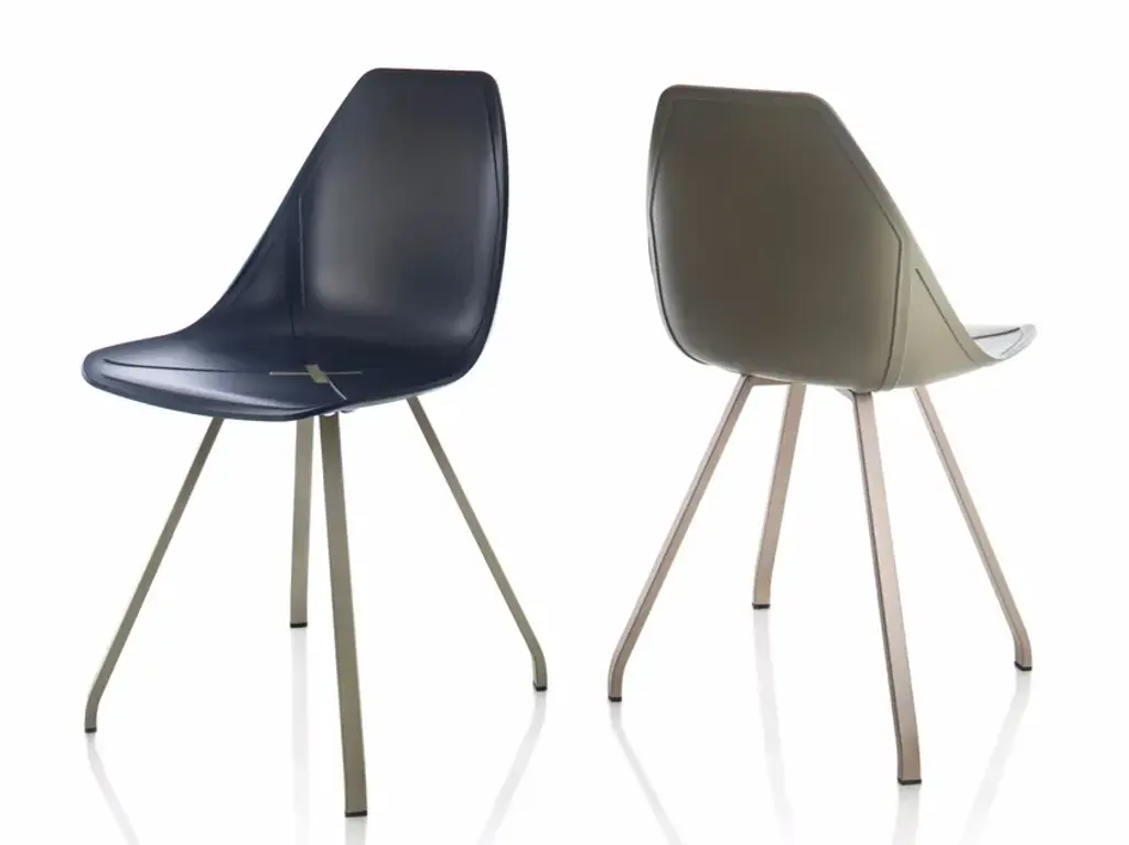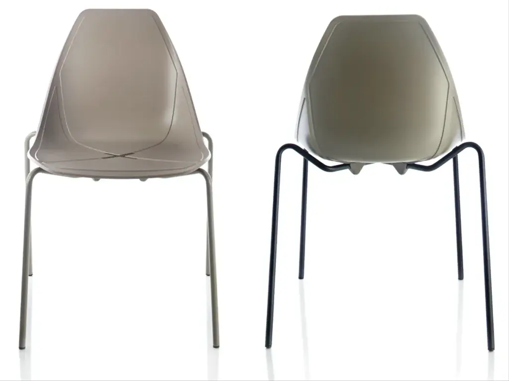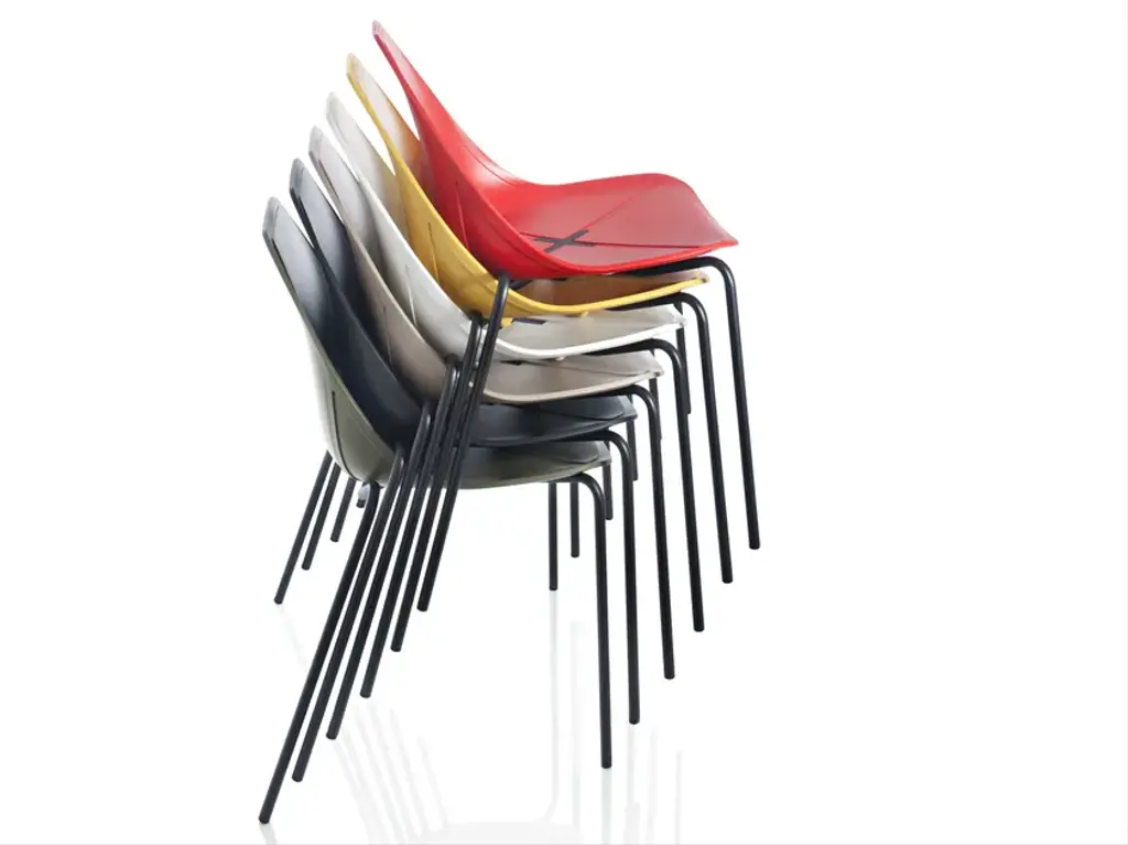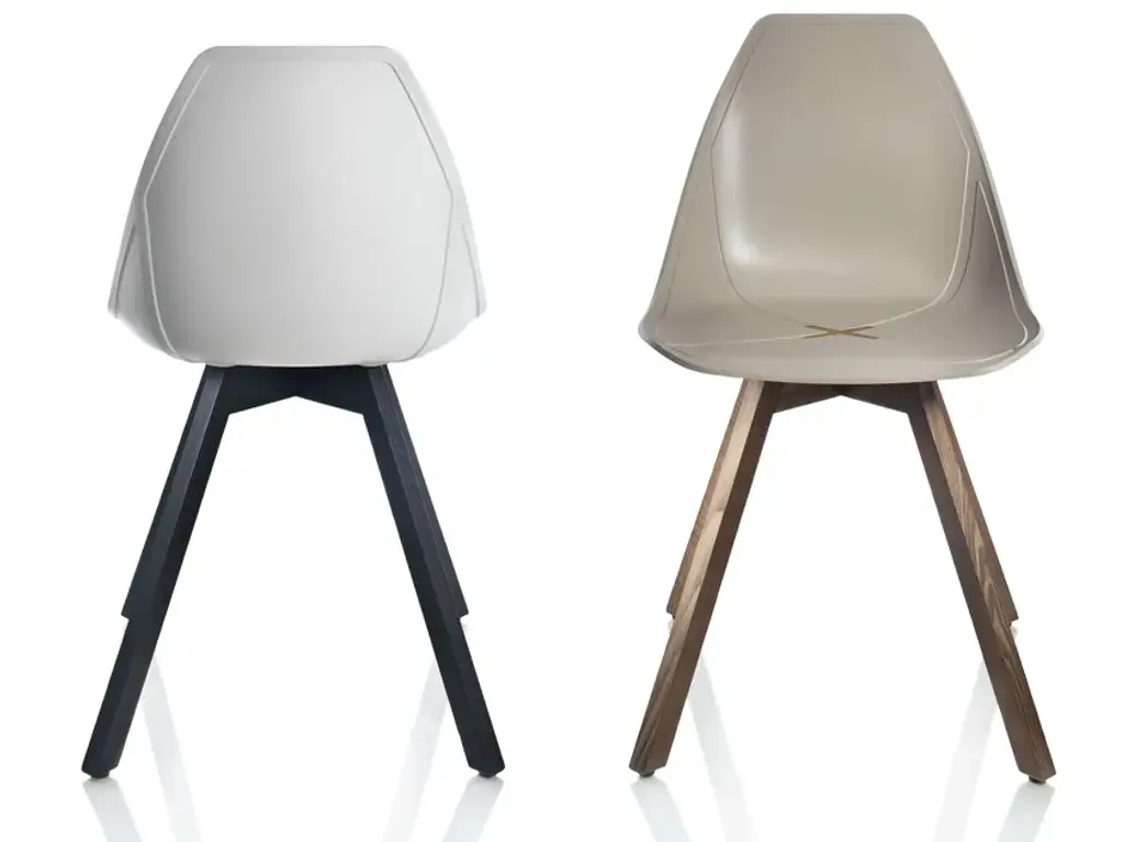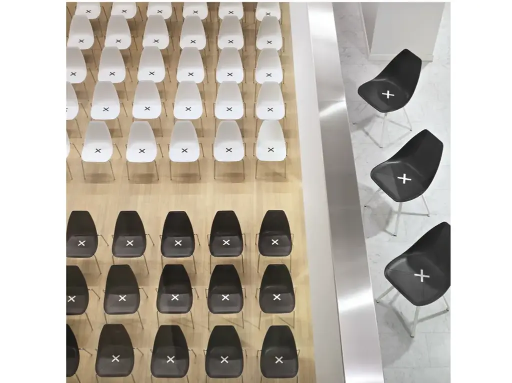 X Four is a 4 legs chair, with or without cushion. Materials and colors: Chrome plated steel, painted aluminium, anthracite, white, sand. Polypropylene anthracite, white, sand, yellow. Fabrics from sample book. Cross natural ash wood or polypropylene, in the same color of the shell or in contrast.