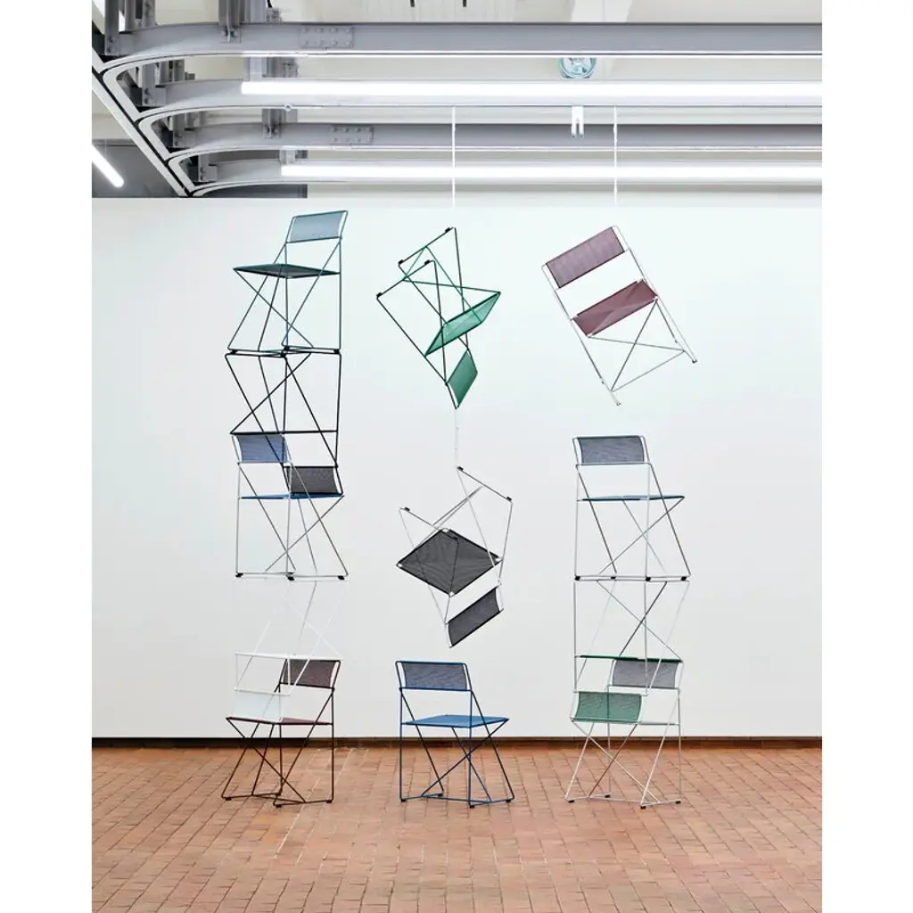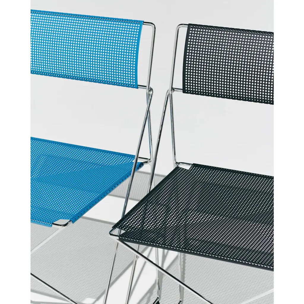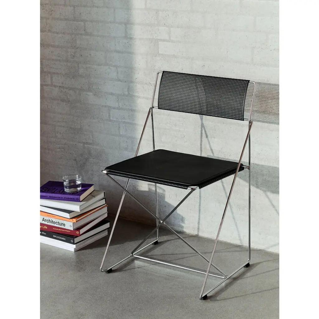 HAY’s X-Line chair combines lightness with elegance, making the chair a stylish choice for homes as well as public spaces. Made of thin steel, the X-Line chair is based on a simple geometric leg structure that is shaped like the letter X. This design provides stability and strength to the sitter, while also delivering an esthetically appealing design that subtly flirts with industrial influences. The X-Line chair was originally designed in 1977 by architect Niels Jørgen Haugesen and manufactured by Magnus Olesen until 2025. Now, the Danish design brand HAY has reintroduced the metal chair to the delight of modern design enthusiasts. Please note that this chromed steel version is for indoor use only.