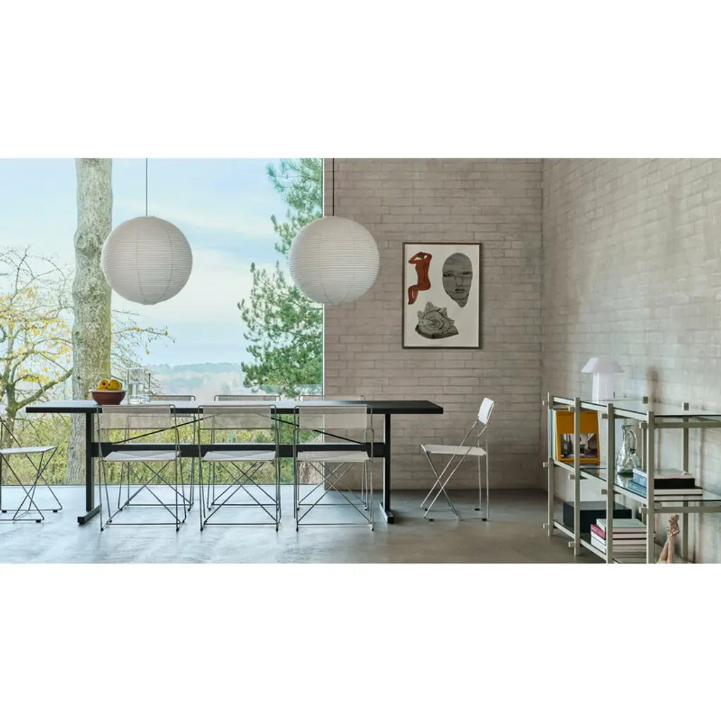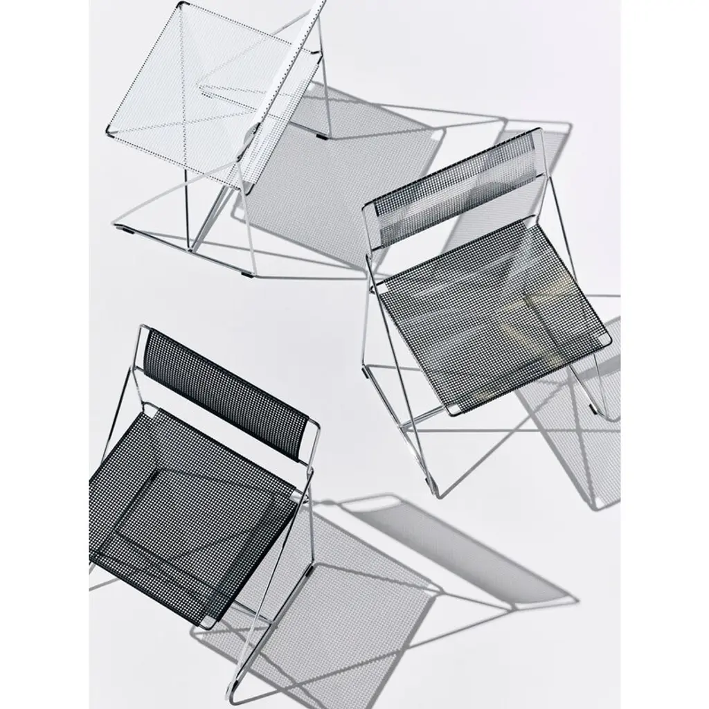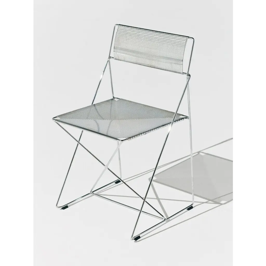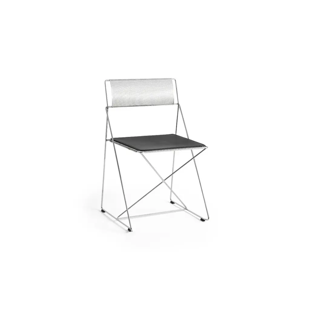 HAY’s X-Line chair combines lightness with elegance, making the chair a stylish choice for homes as well as public spaces. Made of thin steel, the X-Line chair is based on a simple geometric leg structure that is shaped like the letter X. This design provides stability and strength to the sitter, while also delivering an esthetically appealing design that subtly flirts with industrial influences. The X-Line chair was originally designed in 1977 by architect Niels Jørgen Haugesen and manufactured by Magnus Olesen until 2025. Now, the Danish design brand HAY has reintroduced the metal chair to the delight of modern design enthusiasts. Please note that this chromed steel version is for indoor use only.