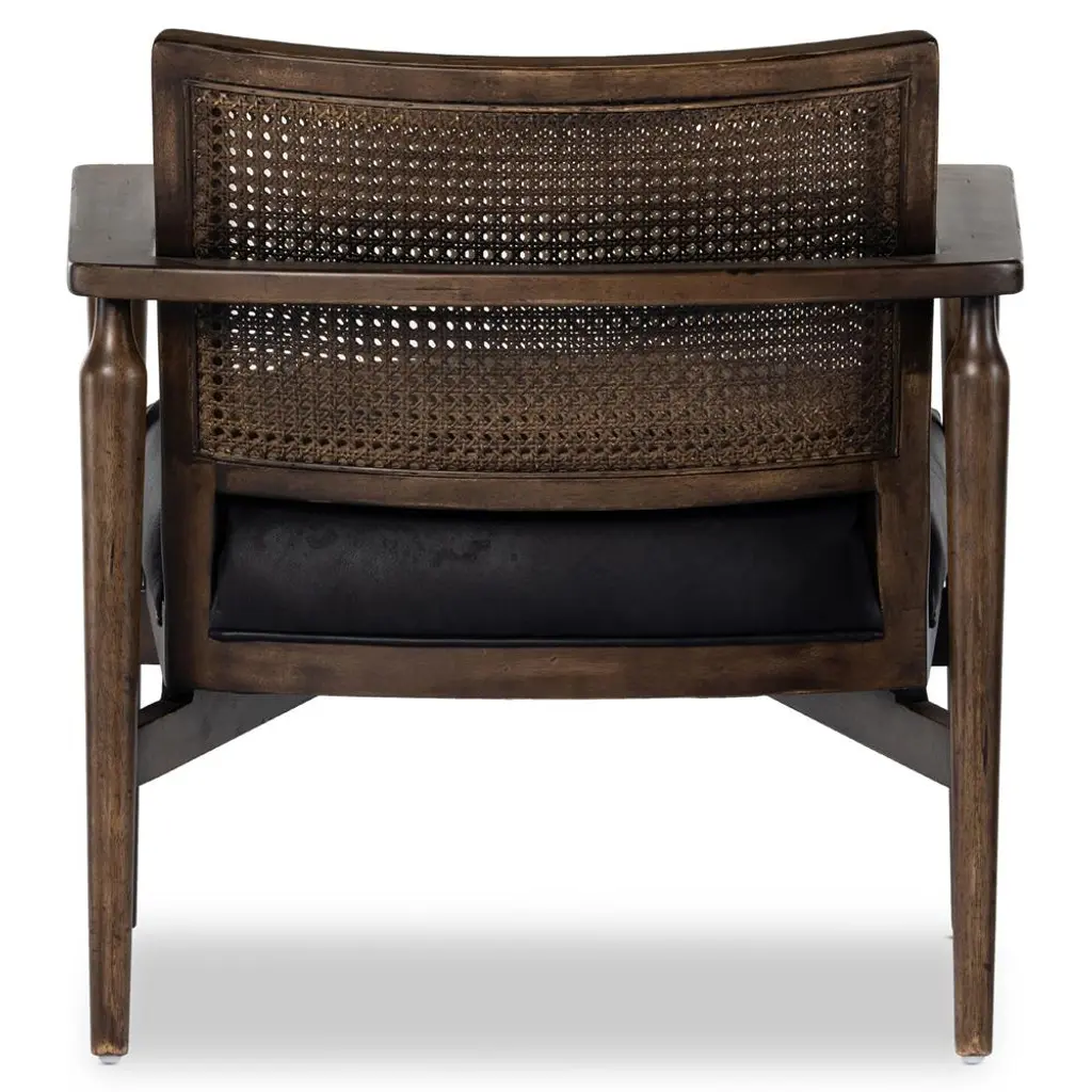 Xander Rustic Lodge Brown Woven Cane Black Leather Seat Occasional Arm Chair