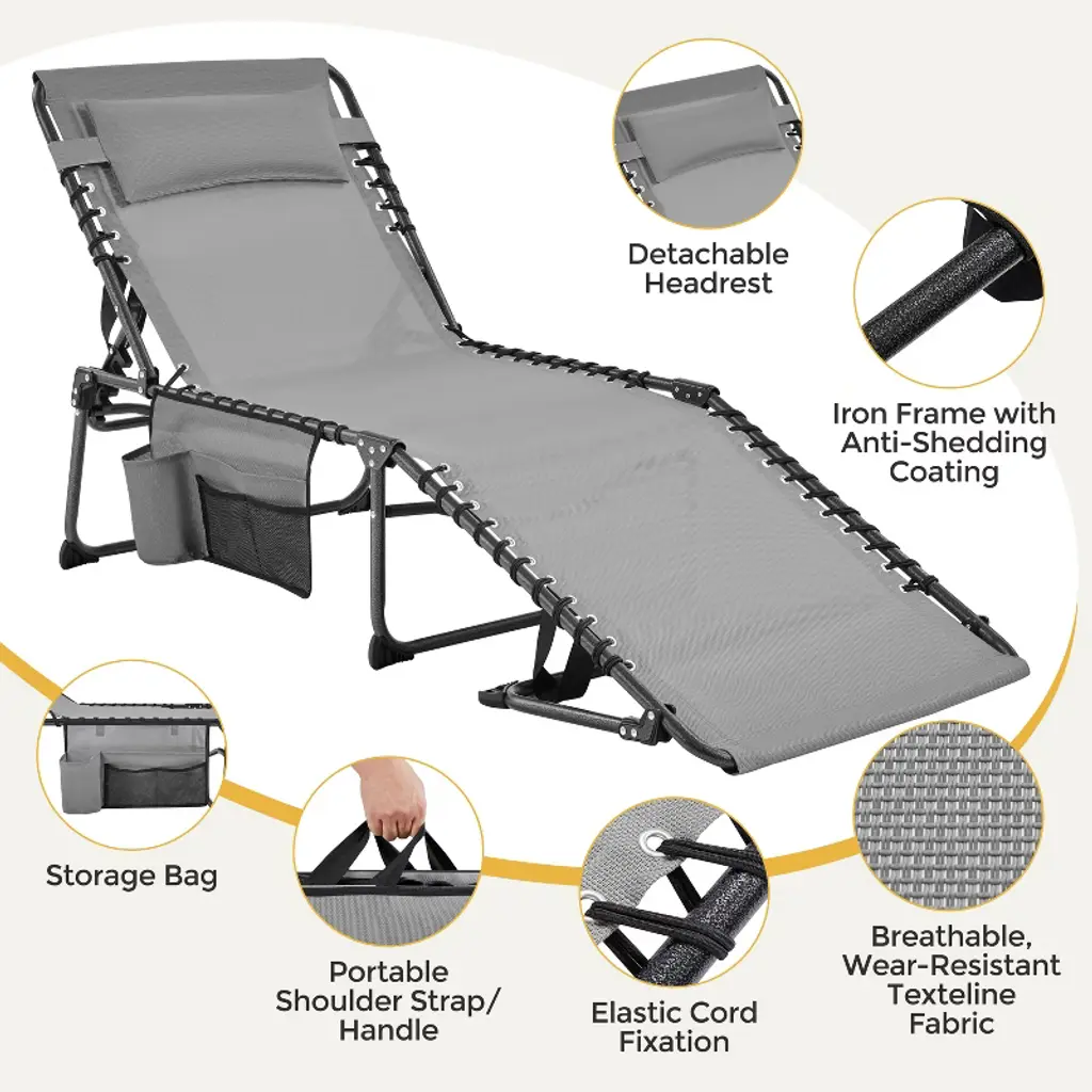 Yaheetech Folding Tanning Chair With 5 Back Adjustable Positions, Gray