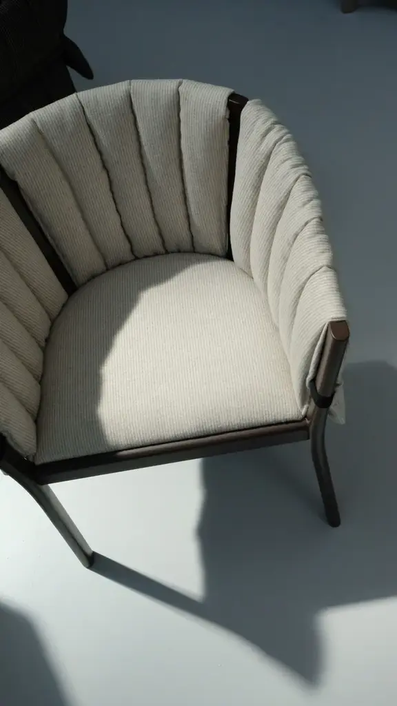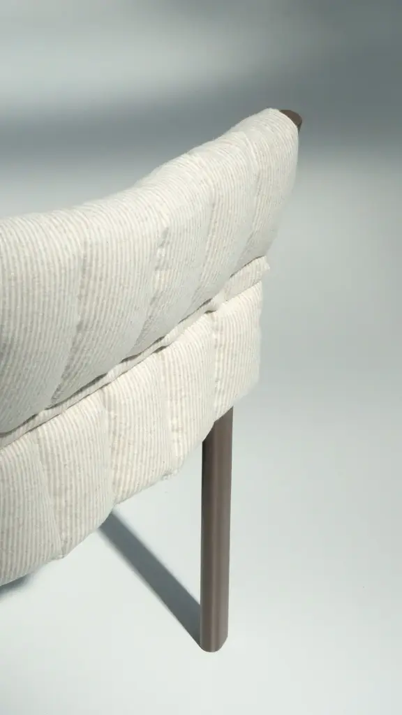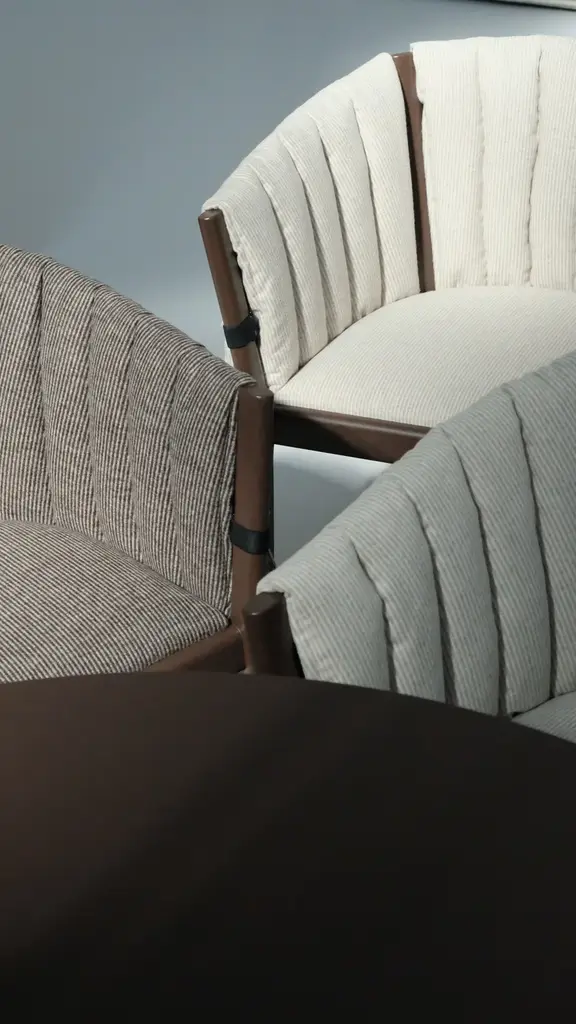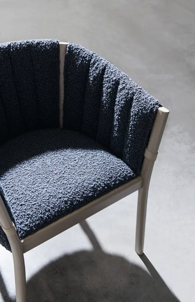 YELEK is a chair with a lacquered ash frame in Date, Blueberry or Ginger. The seat is made of polyurethane on a multilayer wooden frame and has a removable cover in quilted fabric. Available in all sample fabrics except 3D, Quilt Malta and Quilt Velour.