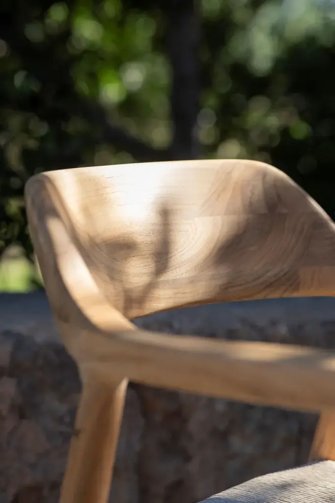 Elegance and curved lines from every angle and exceptional seating comfort were the drivers behind the design of YIKO. The seat – woven in a recycled two-tone wicker - evoke a familiar sense of nostalgia, and offers exceptional comfort. The teak frame hints at both traditional craftsmanship and pure, Japanese-inspired minimalism. Available in warm teak natural, YIKO effortlessly complements both classic and modern environments.