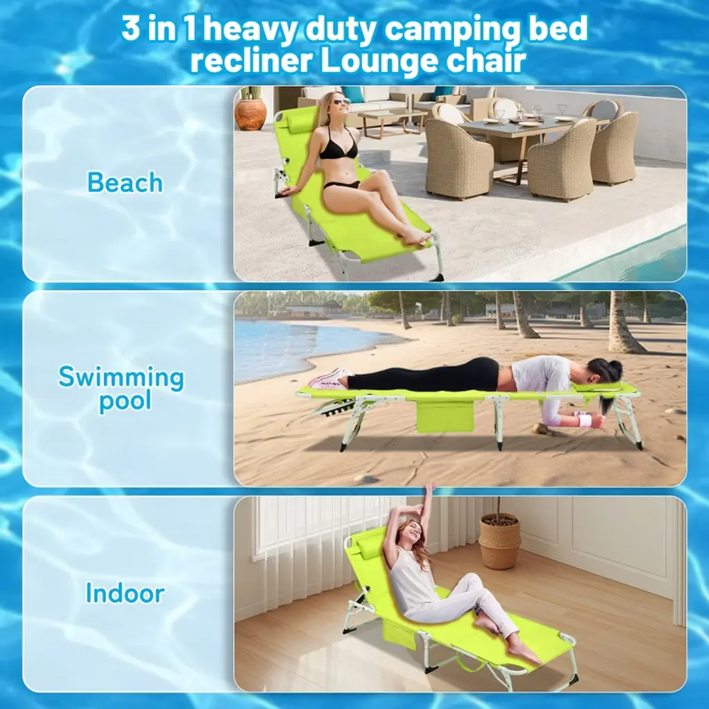 Yinvani 3-in-1 Heavy Duty Tanning Chair With Face Hole, Adjustable 5-position, Portable Lounge Chair For Outdoor Sunbathing, Green