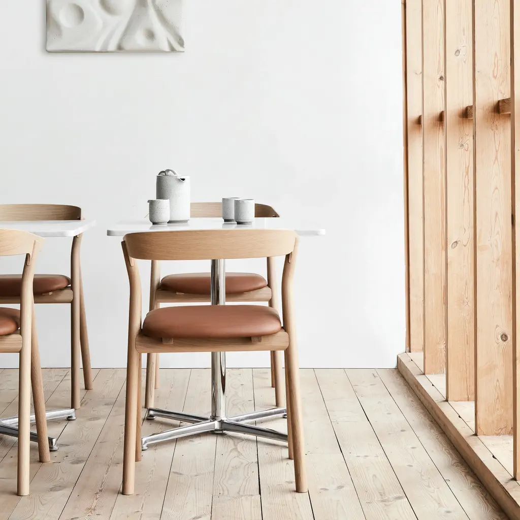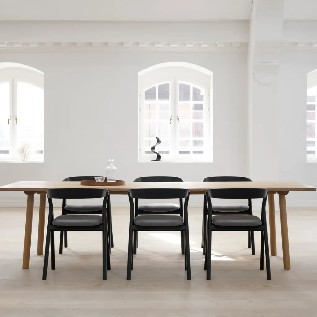 Yksi's simplicity is rooted in the finest craftsmanship, a point of pride for the design duo consisting of Danish Jakob Thau and Finnish Sami Kallio. Faultlessly made in solid oak, the skilled workmanship "optimizes the design and aesthetics," say the designers while the upholstered seat complements the chair's sturdy yet elegant structure. Two chairs can be stacked for compact storage, making it a perfect choice for private homes, professional workspaces or cafés and hospitality environs.