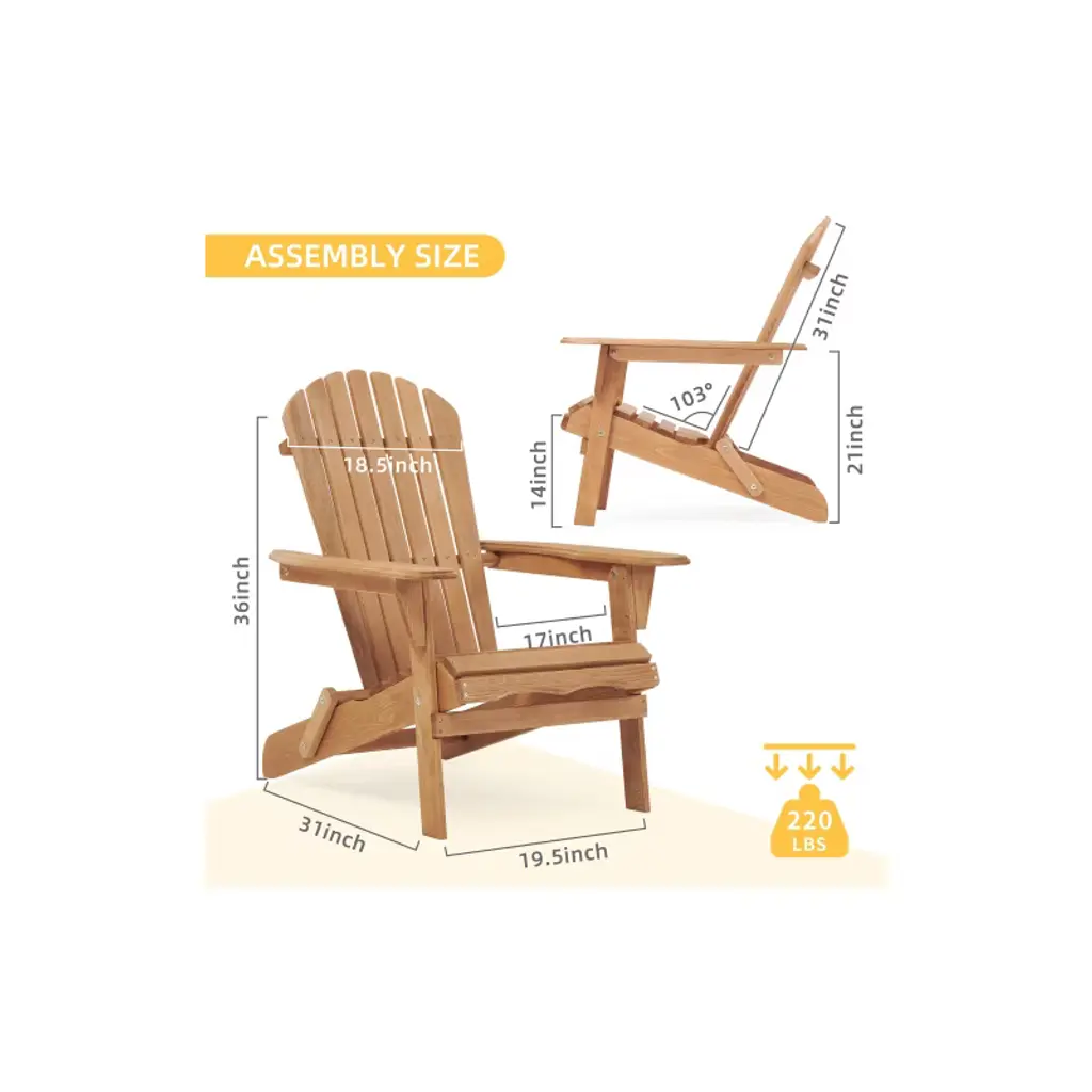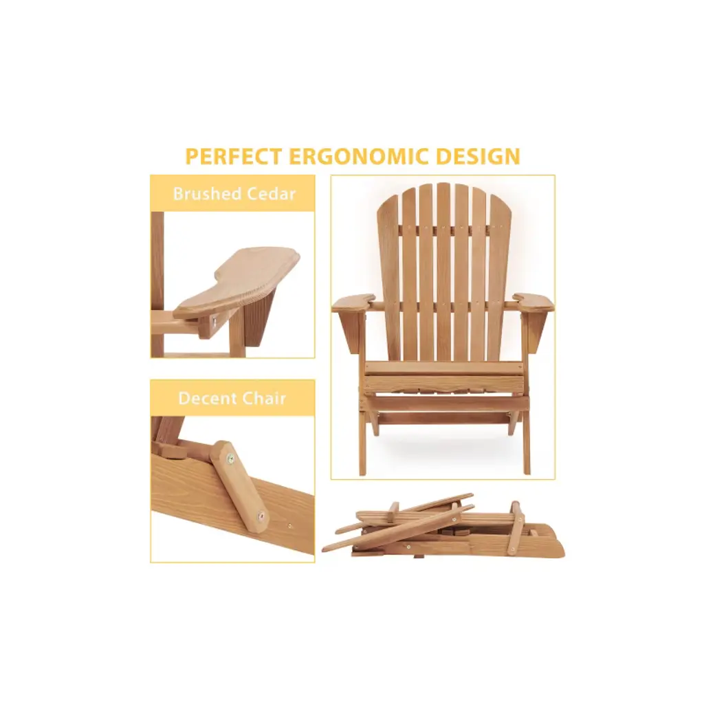 Yuhao 2Pcs Folding Adirondack Lounge Patio Chairs Weather Resistant For Garden Patio Backyard Deck Poolside,solid Cedar Wood,light Brown
