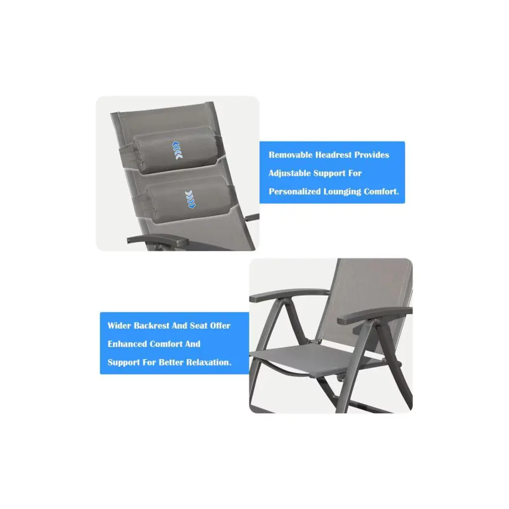 Upgraded Comfort - Crafted with breathable, comfortable Textilene fabric, these chairs feature high quality aluminum frame for added comfort. The quick-dry, durable fabric is designed to withstand regular use, making it an excellent companion for sunbathing and camping.