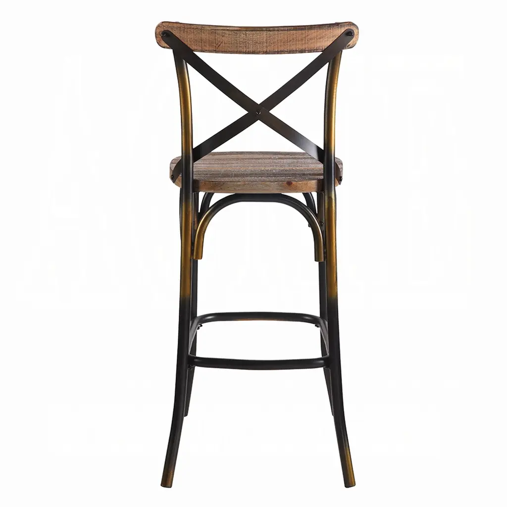 The Zaire collection chairs offer a vintage style bar chairs. It Features: reclaimed wood and metal looks, simple "X" style backrest, wooden seat, slightly flared four-legged base with footrest supports. Available in Antique Red, Antique Turquoise, Antique Sky and Antique Copper.