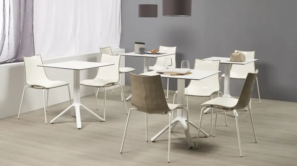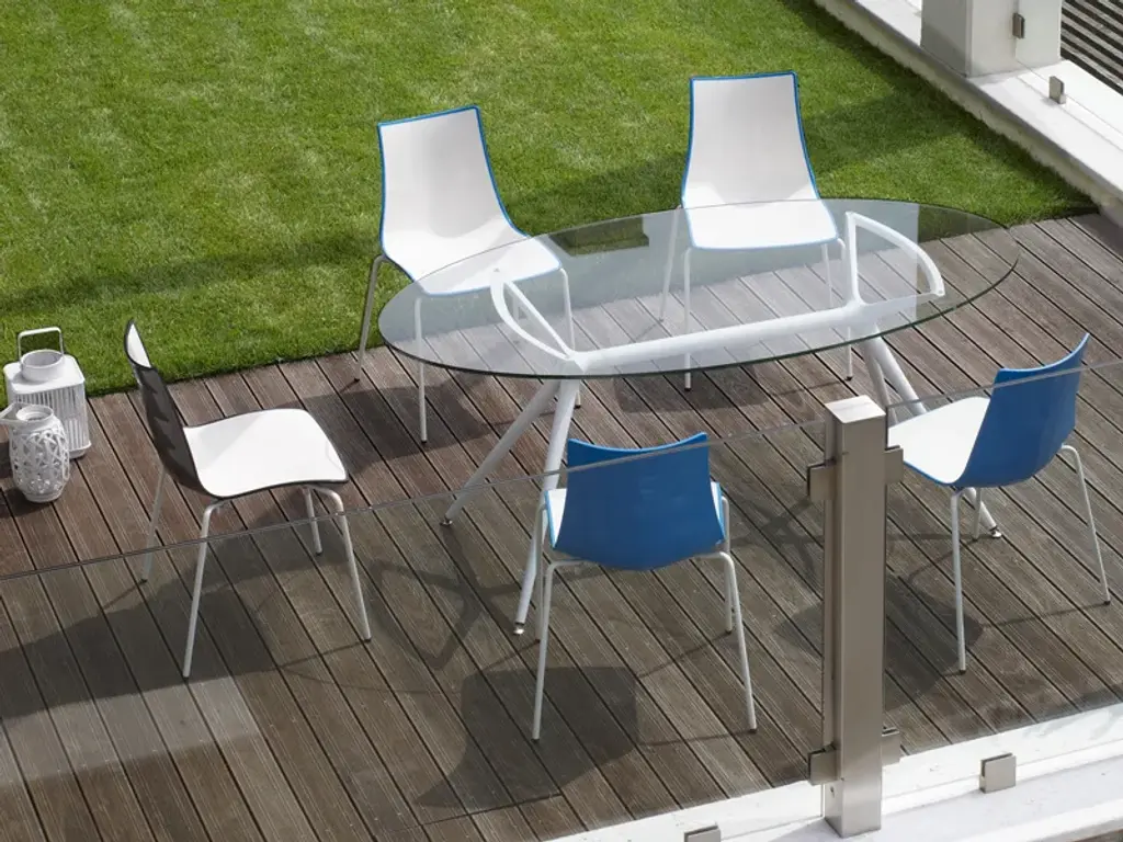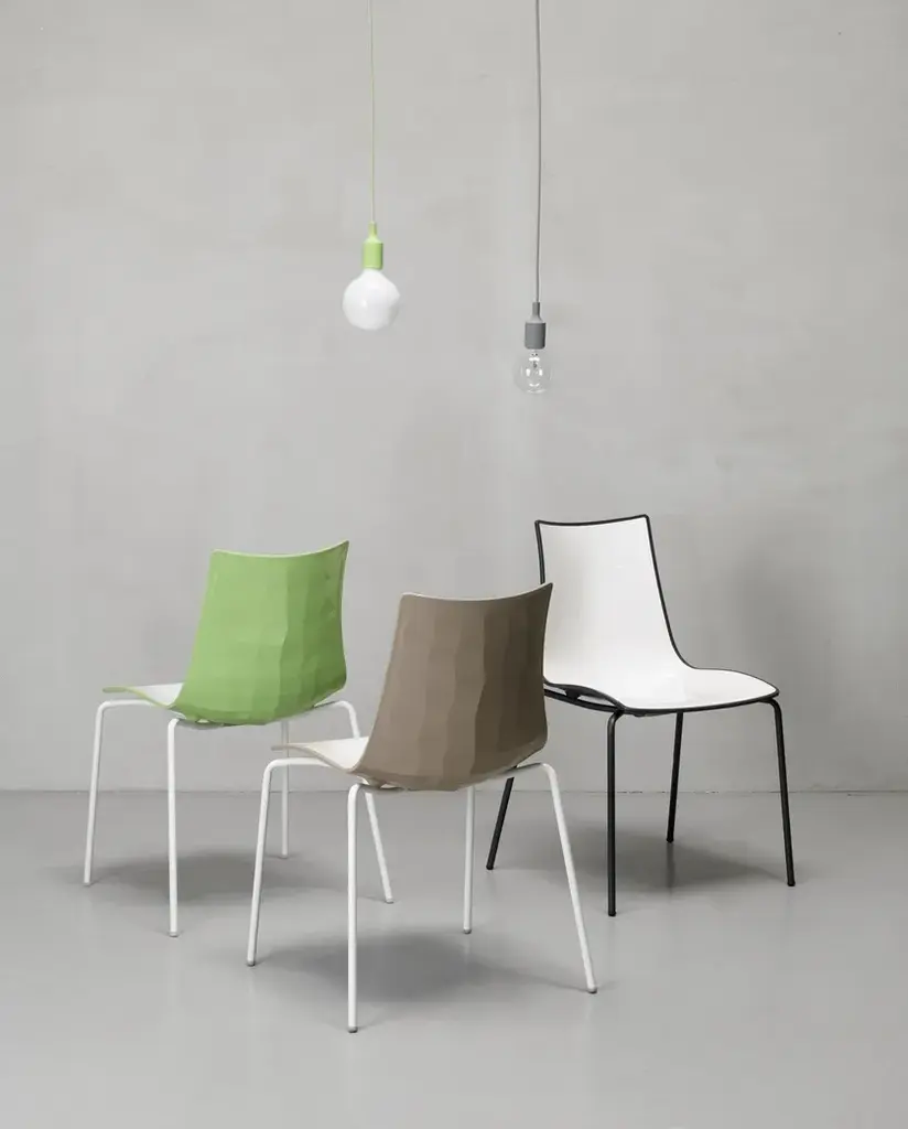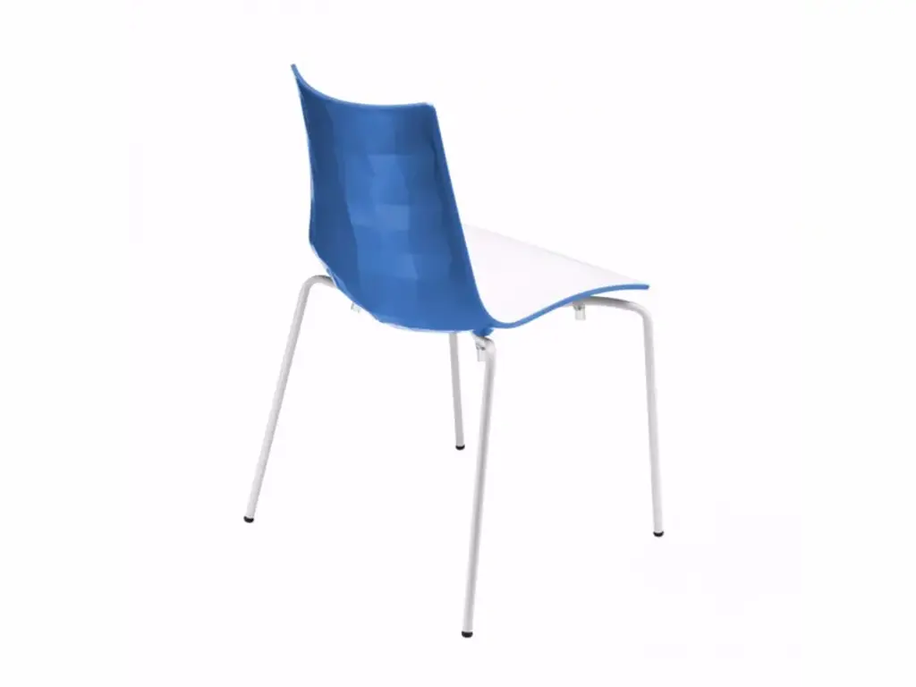 ZEBRA BICOLORE by Luisa Battaglia is a stackable chair, with or without armrests, in two colour polymer main body.Inner side in polished white, outer side with faceted polished surface.Available with 4-leg chrome steel tube frame for indoor use or white or anthracite grey coated steel 4-leg frame for indoor and outdoor use.Available in 6 colour choices. PURCHASE INFORMATION : Price includes 2 pcs. with the same configuration.