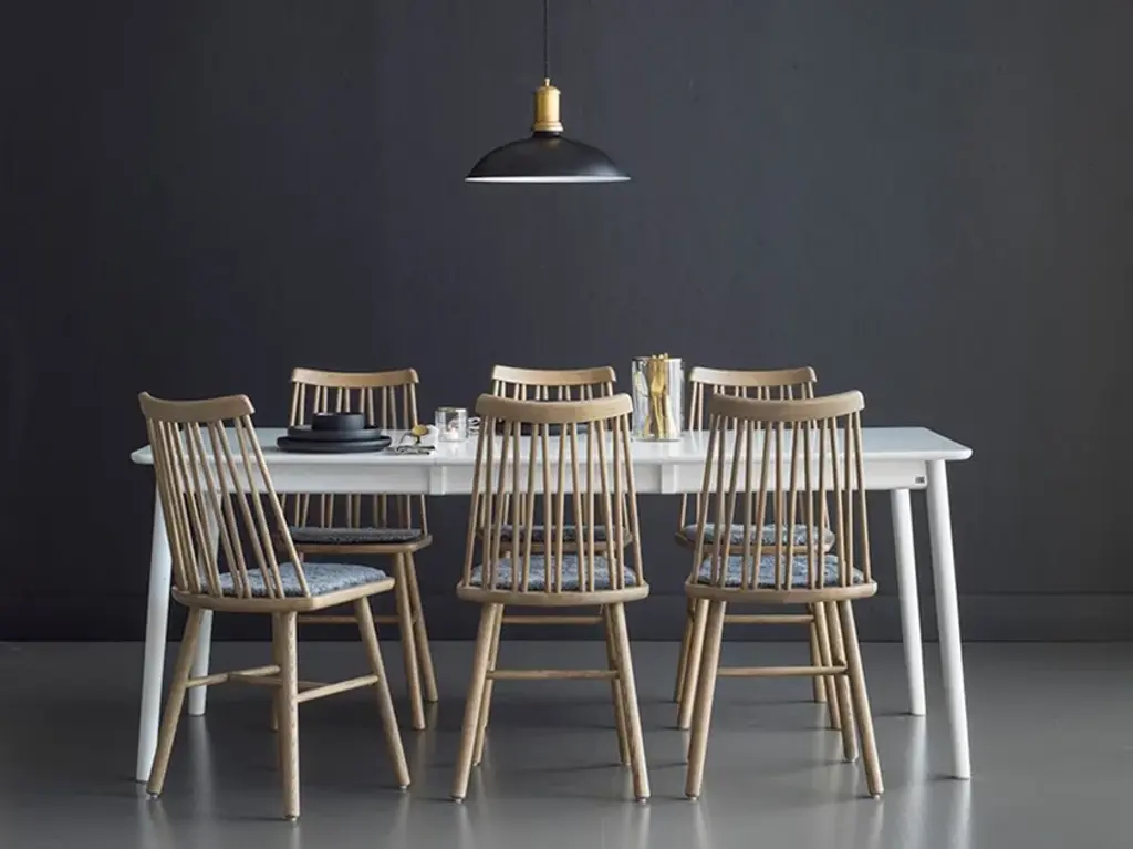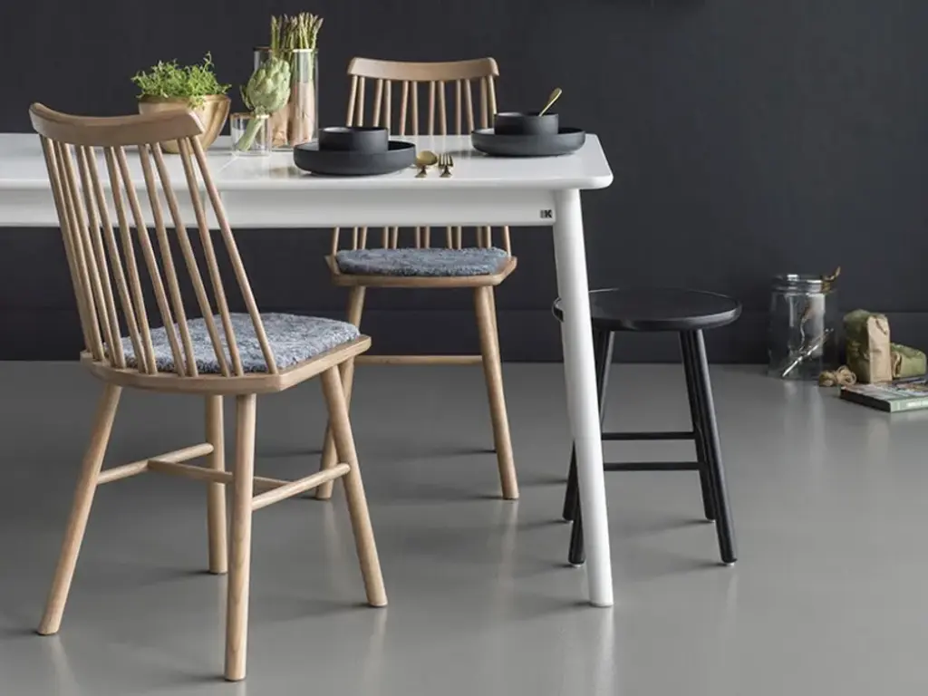 Zig Zag is a chair in solid oak, ash and birch. The backrest is available in two versions: curved with armrests or straight without armrests. Can be equipped with a pillow.