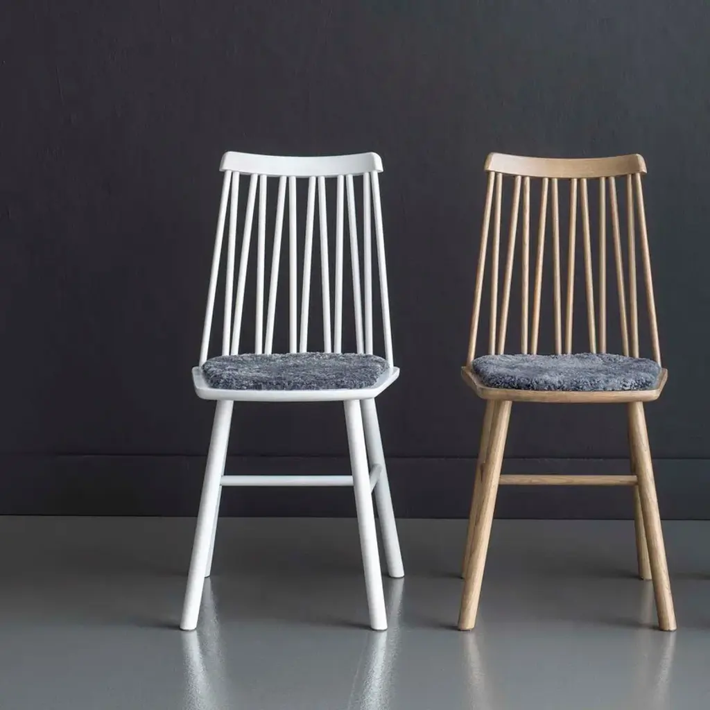 Zig Zag is a chair in solid oak, ash and birch. The backrest is available in two versions: curved with armrests or straight without armrests. Can be equipped with a pillow.