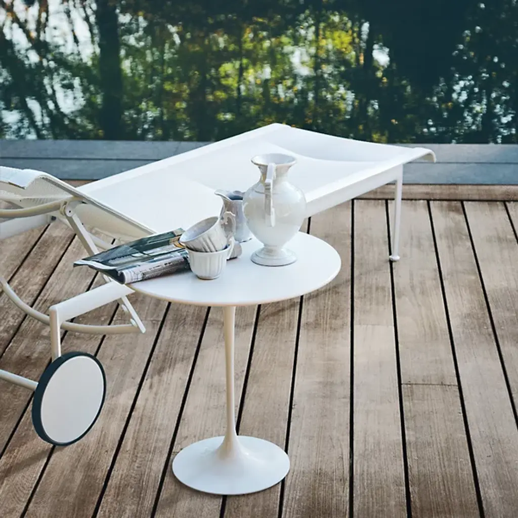 The patio deserves to be just as stylish as any living room. That's why Florence Knoll approached designer Richard Schultz in 1962, requesting a furniture series that could stand up to the demands of outdoor use. The result was the 1966 Collection, and with it, the Adjustable Chaise Lounge by Knoll, sporting durable vinyl straps and resilient polyester mesh that offer just the right amount of 'give' to cushion the user in ease and comfort.