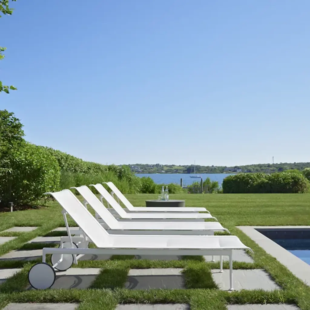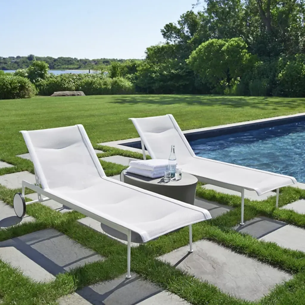 The patio deserves to be just as stylish as any living room. That's why Florence Knoll approached designer Richard Schultz in 1962, requesting a furniture series that could stand up to the demands of outdoor use. The result was the 1966 Collection, and with it, the Adjustable Chaise Lounge by Knoll, sporting durable vinyl straps and resilient polyester mesh that offer just the right amount of 'give' to cushion the user in ease and comfort.