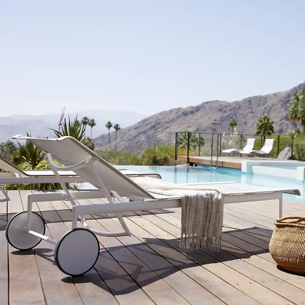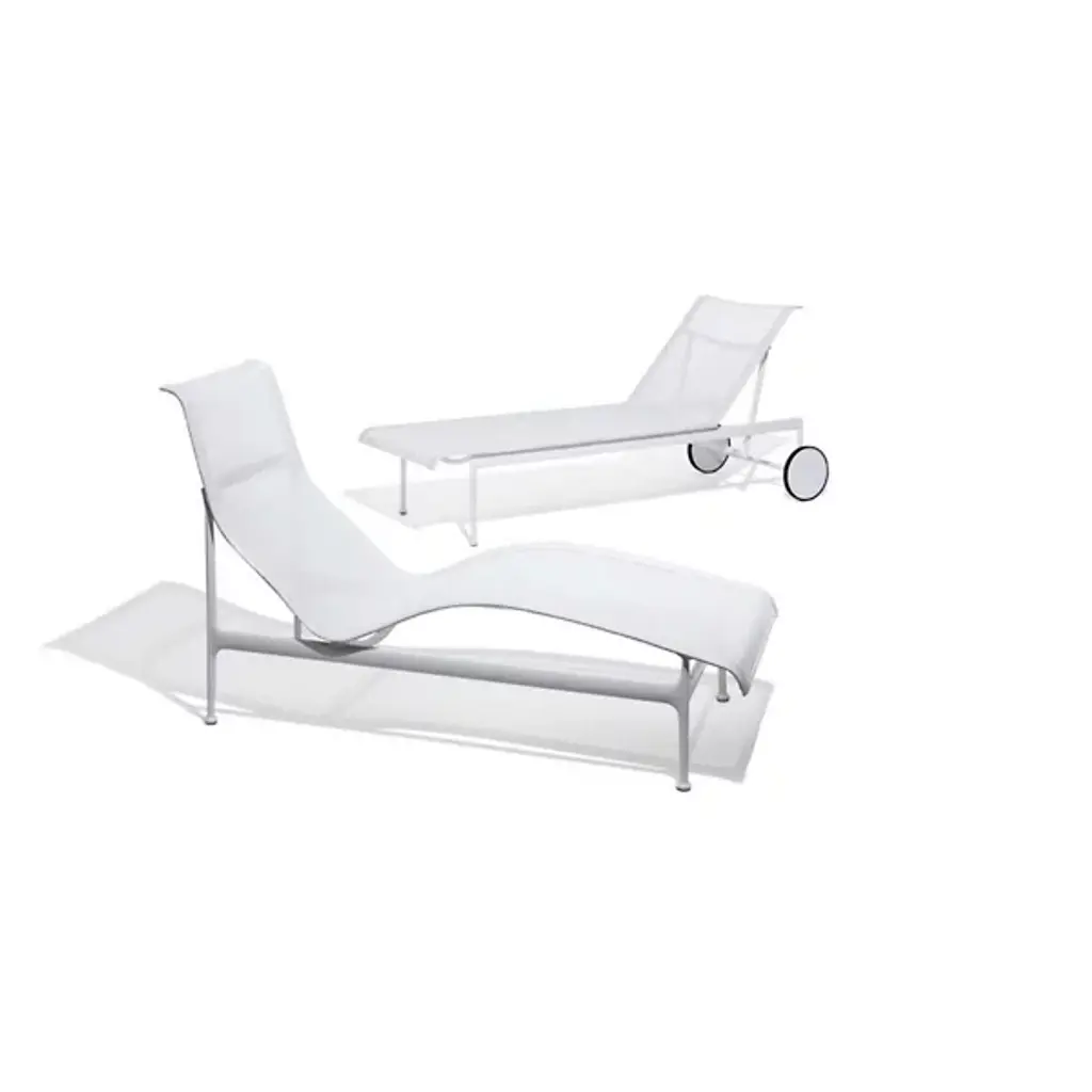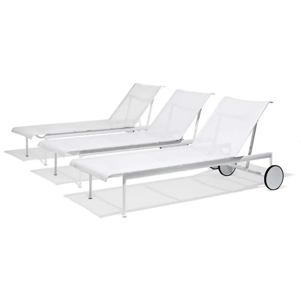 The patio deserves to be just as stylish as any living room. That's why Florence Knoll approached designer Richard Schultz in 1962, requesting a furniture series that could stand up to the demands of outdoor use. The result was the 1966 Collection, and with it, the Adjustable Chaise Lounge by Knoll, sporting durable vinyl straps and resilient polyester mesh that offer just the right amount of 'give' to cushion the user in ease and comfort.