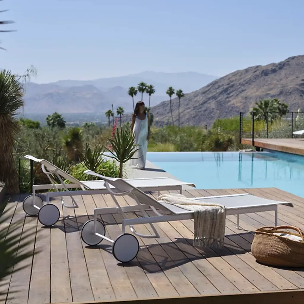 The patio deserves to be just as stylish as any living room. That's why Florence Knoll approached designer Richard Schultz in 1962, requesting a furniture series that could stand up to the demands of outdoor use. The result was the 1966 Collection, and with it, the Adjustable Chaise Lounge by Knoll, sporting durable vinyl straps and resilient polyester mesh that offer just the right amount of 'give' to cushion the user in ease and comfort.