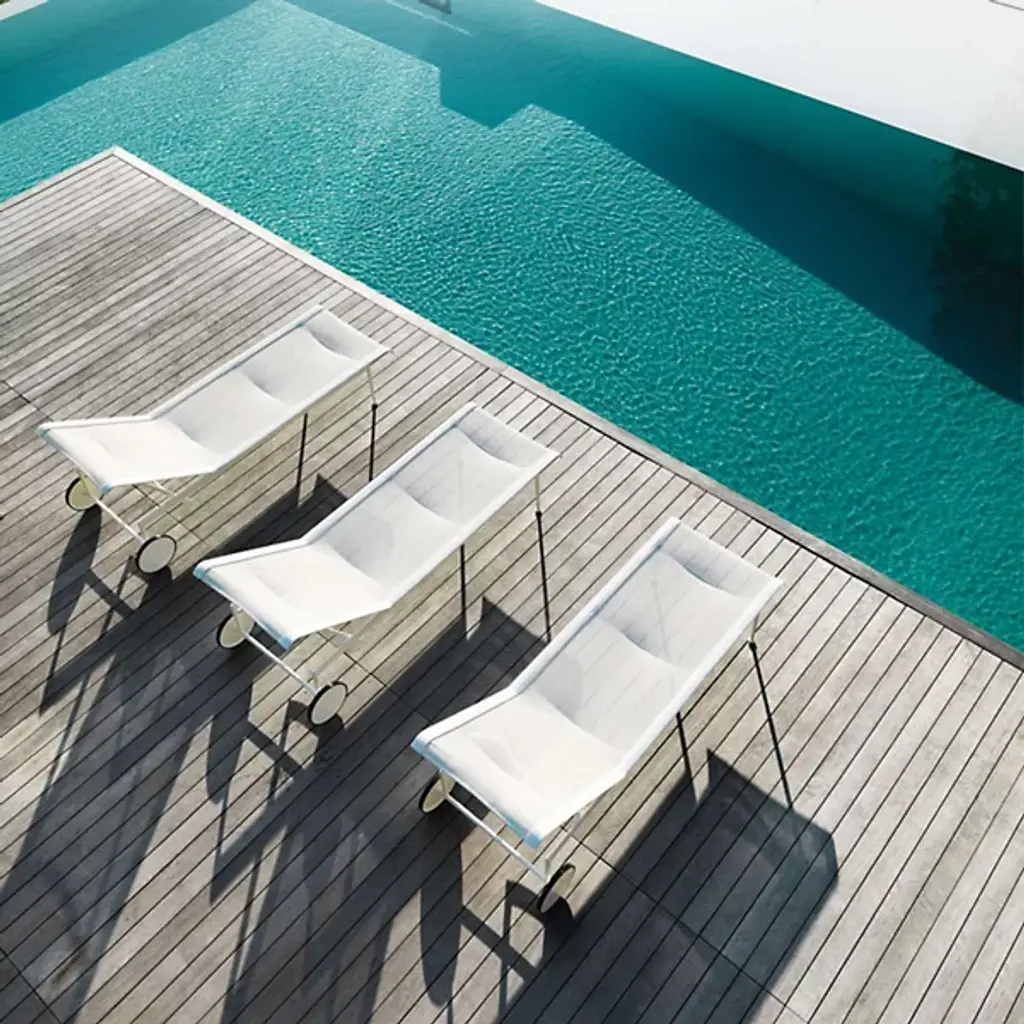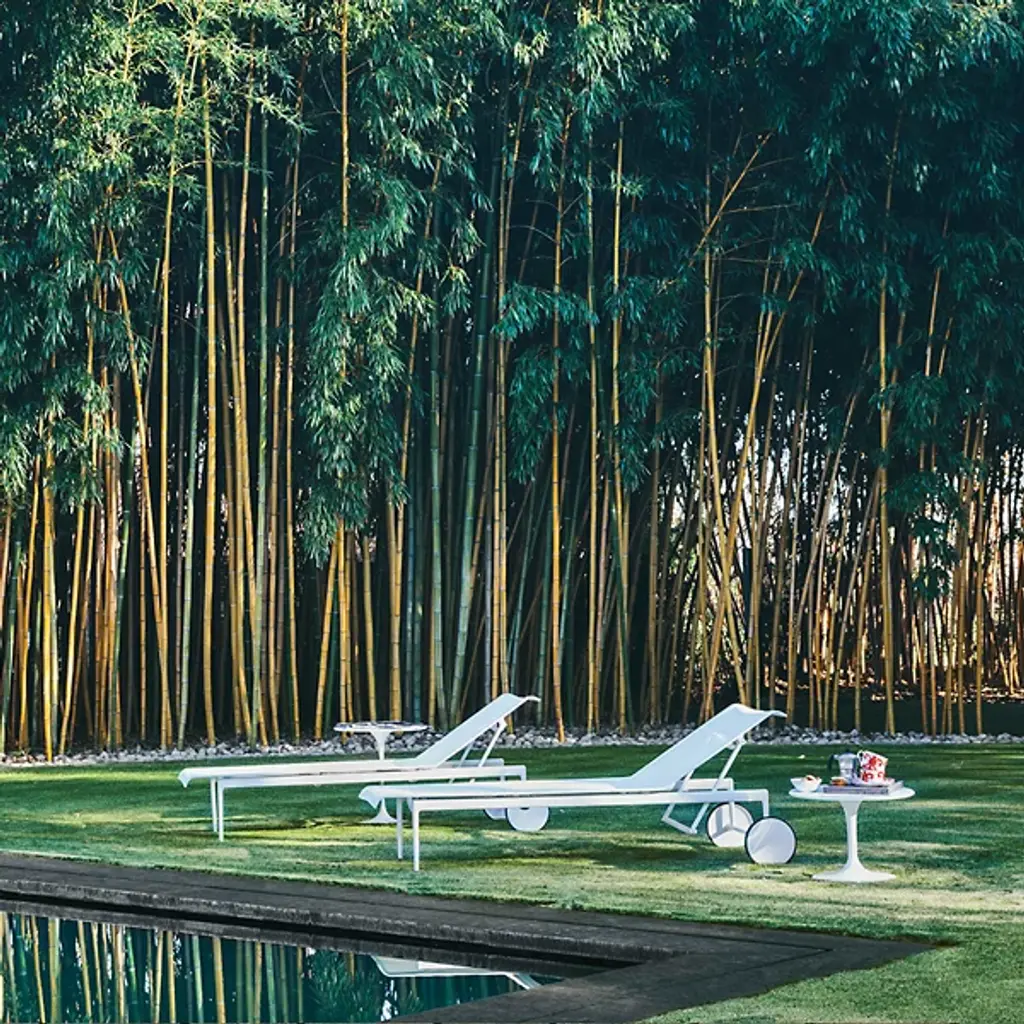 The patio deserves to be just as stylish as any living room. That's why Florence Knoll approached designer Richard Schultz in 1962, requesting a furniture series that could stand up to the demands of outdoor use. The result was the 1966 Collection, and with it, the Adjustable Chaise Lounge by Knoll, sporting durable vinyl straps and resilient polyester mesh that offer just the right amount of 'give' to cushion the user in ease and comfort.