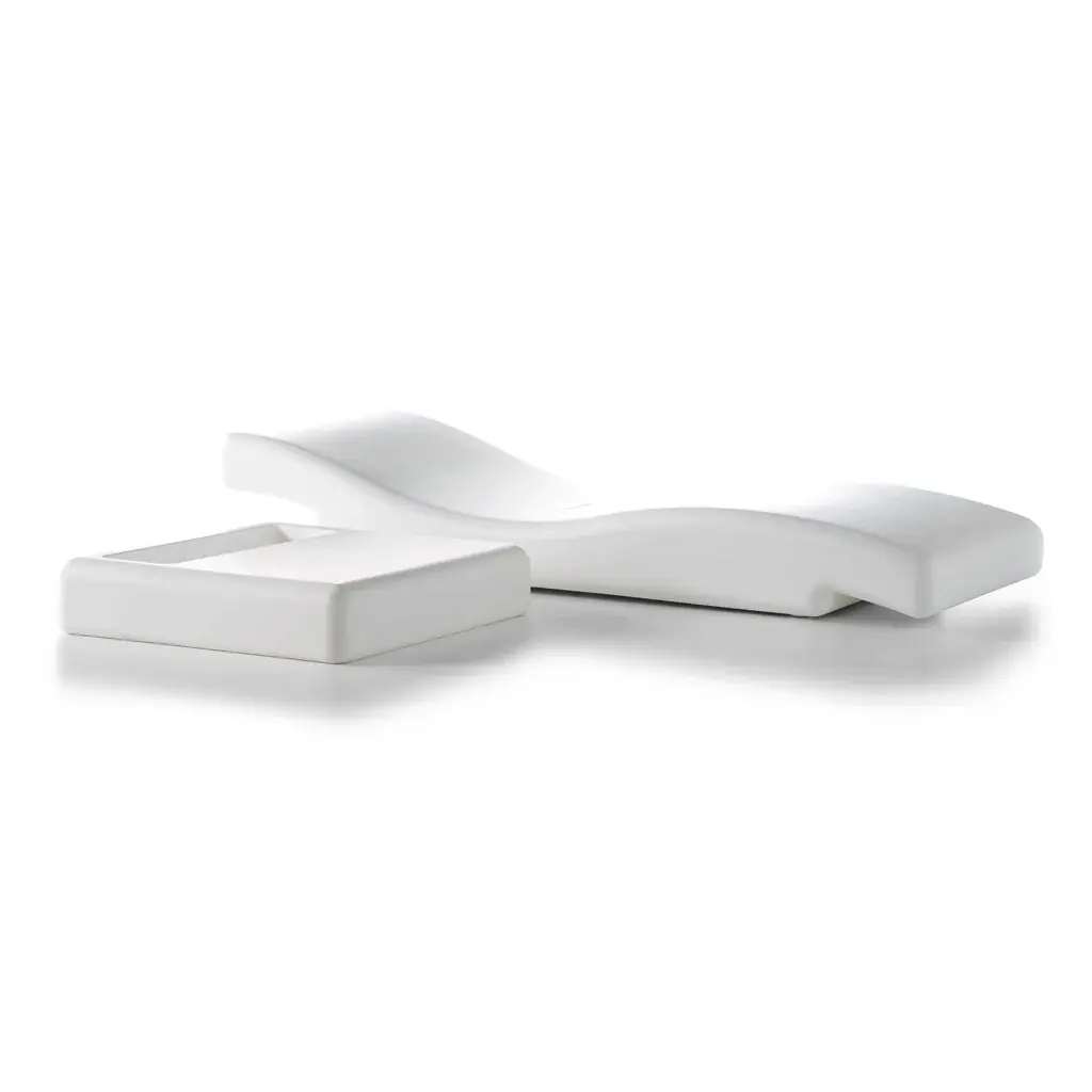 The 356 Chaise Lounge by Diabla is an ultra-chic, contemporary outdoor lounge set. Crafted entirely from all-weather, 100% recyclable polyethylene, this elegant design features soft, sculptural contours beautifully proportioned to the body for countless hours of relaxation on the patio, terrace, or beside the pool. Features