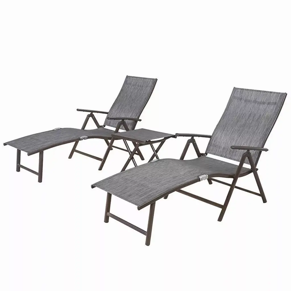 3Pc Outdoor Set With Aluminum Adjustable Chaise Lounge & Table Set - Black/gray - Crestlive Products: Weather-resistant Patio Furniture Set