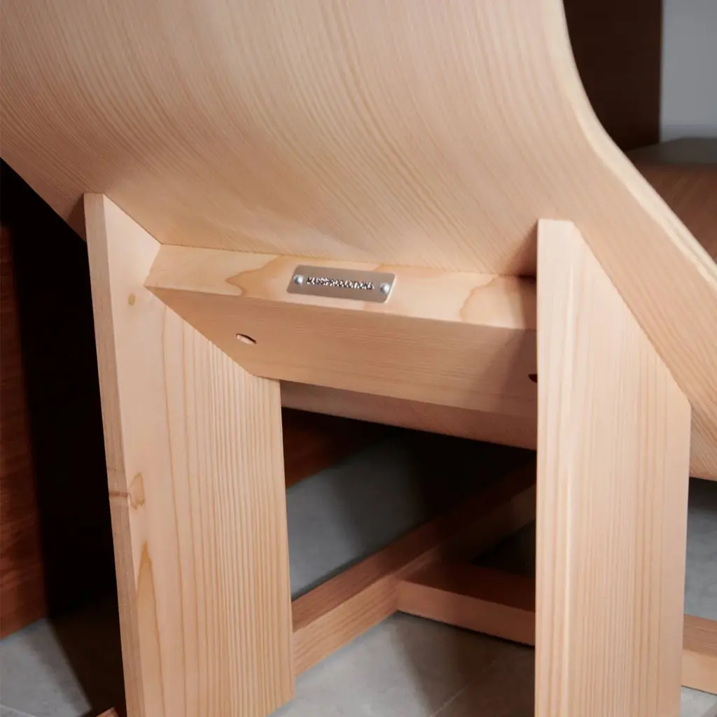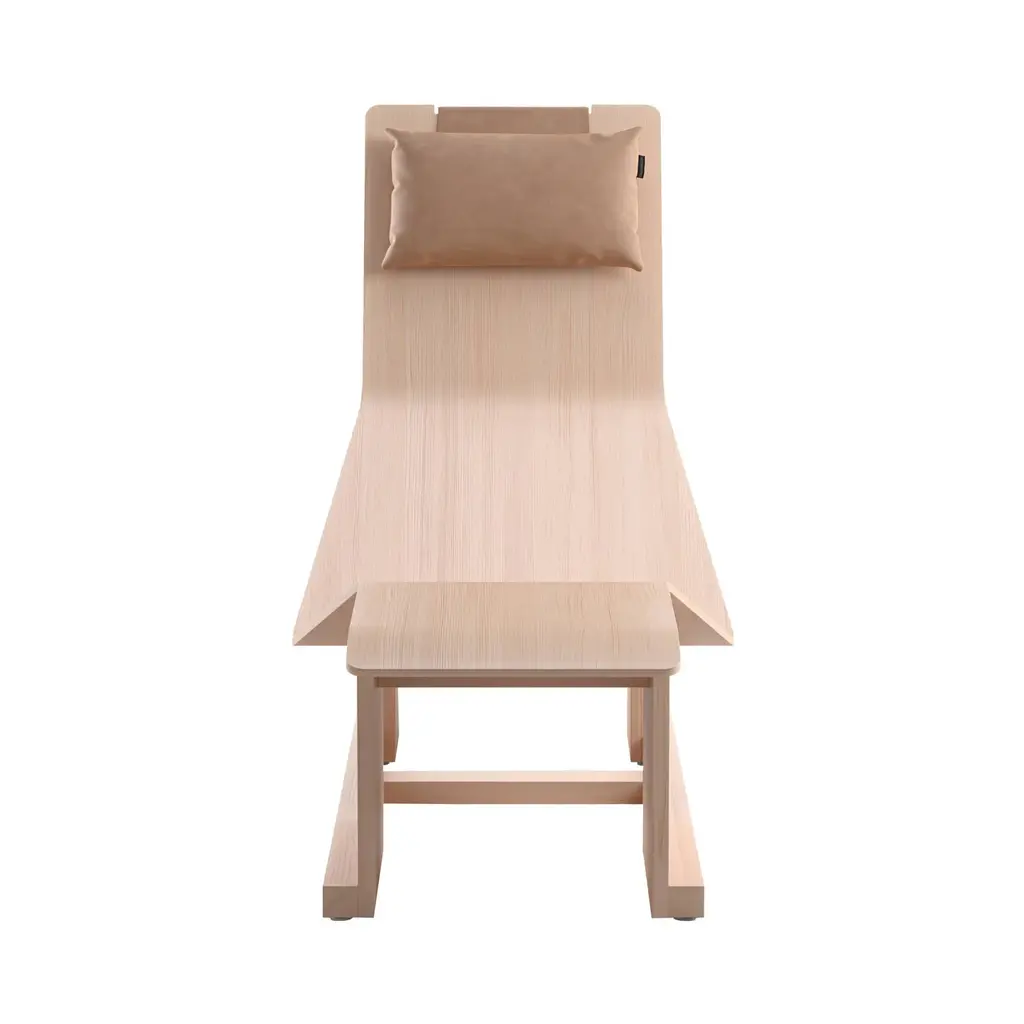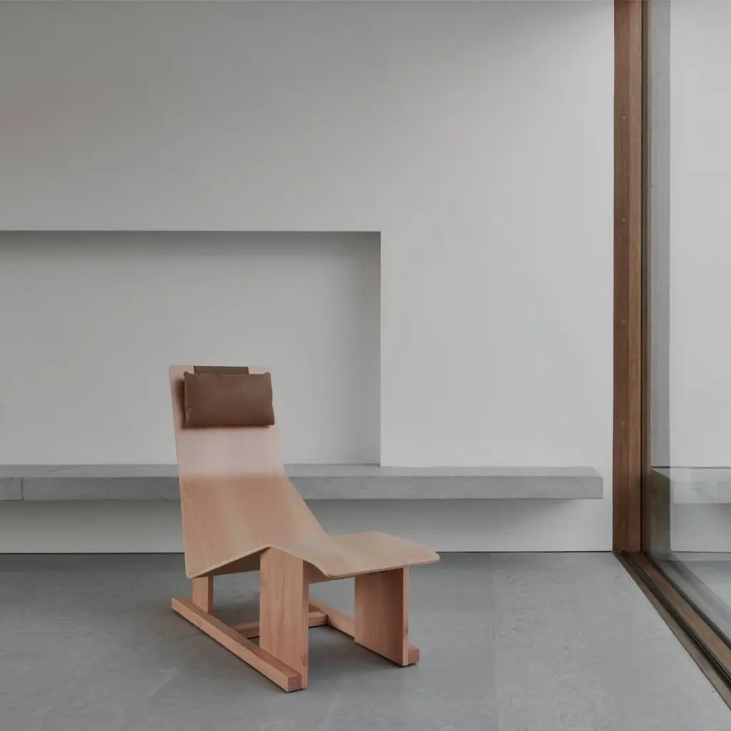 It’s always time for relaxation somewhere and designer Chris Martin’s 4PM Chaise delivers outstanding comfort from an unexpected combination of curved and flat wood surfaces. The tapering lounge’s shape also allows the user’s feet to fall comfortably on both sides, which in turn simplifies getting in or out. In Douglas fir, characterized by its warm tone and fine grain, or slightly darker cherry, it features a height-adjustable leather headrest, held in place by an enclosed steel weight.