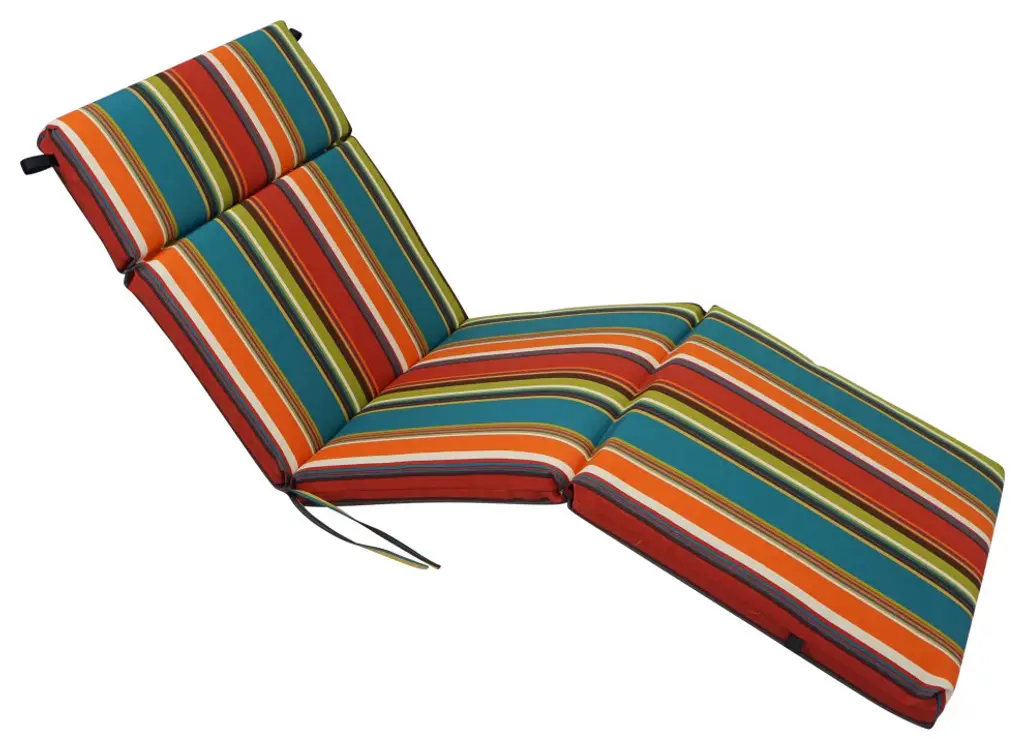 Add a splash of vibrant color and radiant style to your outdoor furnishings with this chaise lounge cushion. This cushion features a classic multi-sectioned style and is available in a wide variety of striking patterns of premium spun polyester outdoor fabric.