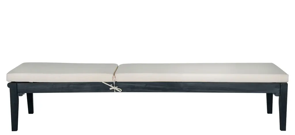 Transform any space into a getaway with this contemporary outdoor sunlounger. Inspired by one of the hottest new hotels in Rio, its luxurious dark slate grey wood, plush cushion and silver metal detail create a premiere piece for haute outdoor living.