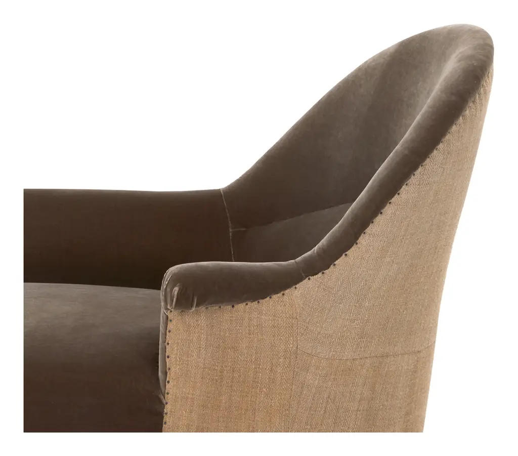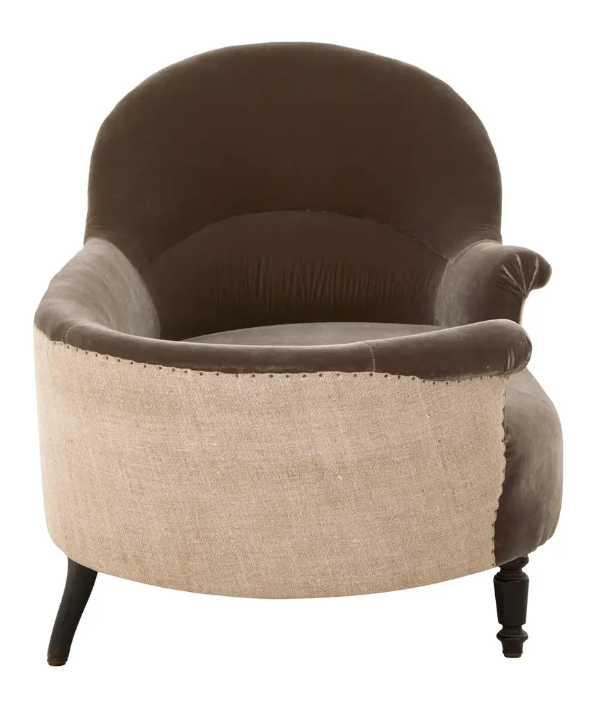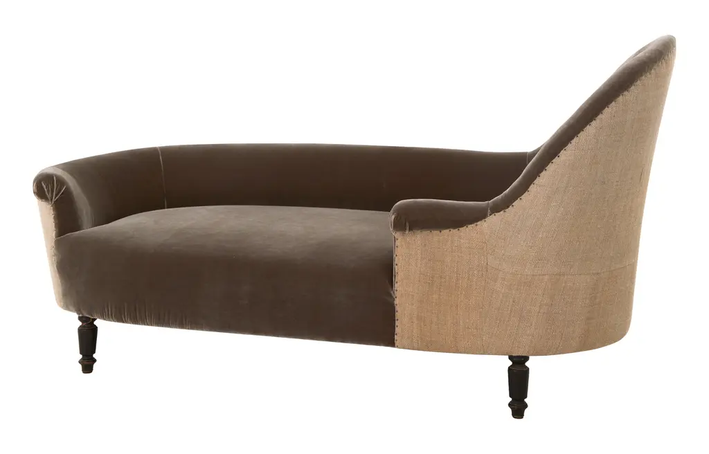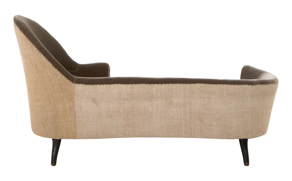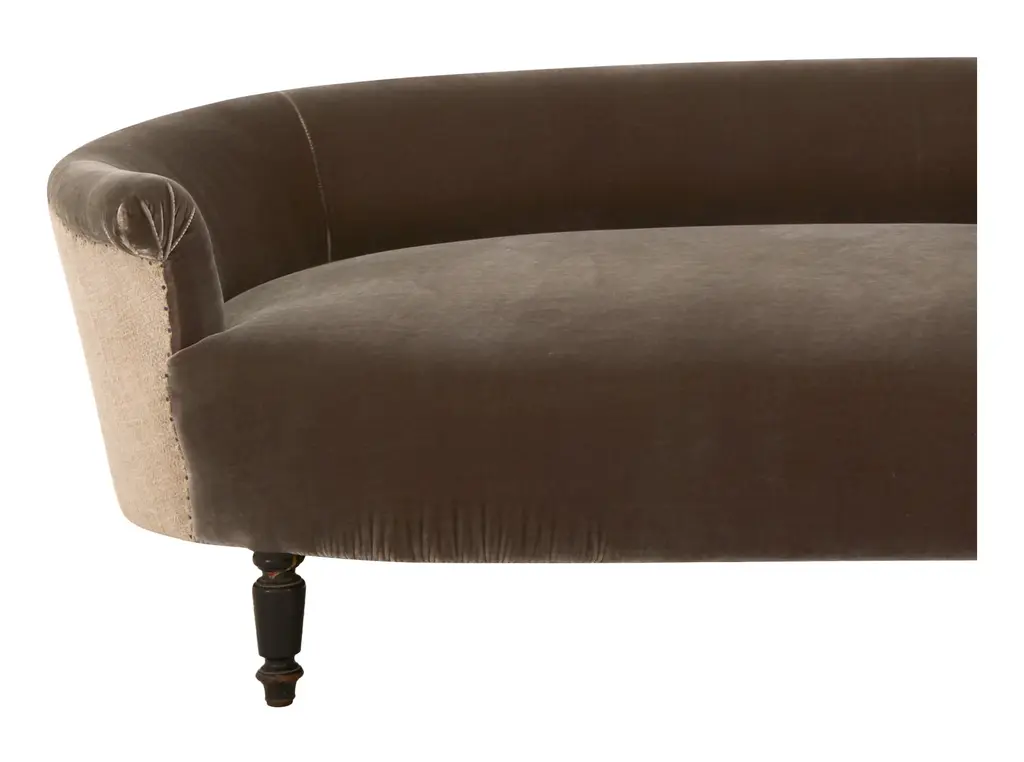 •reupholstered in mink velvet with vintage hemp•tack nail trim•patinaed ebonized wood legs•late 19th century•france Dimensions•78"W x 36"D 38"H •seat: 65"D x 17"H