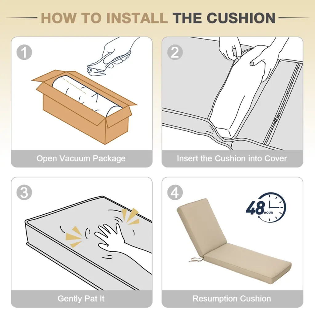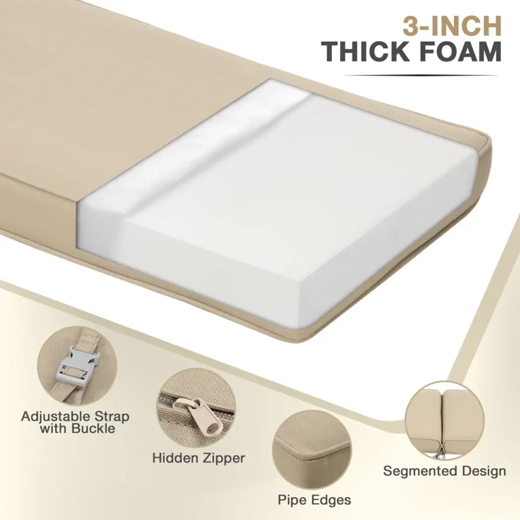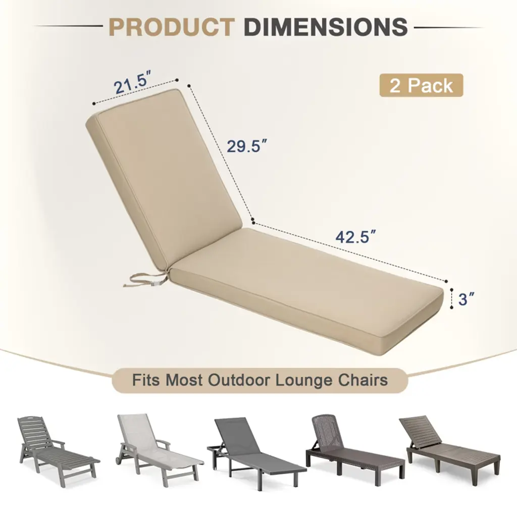 Aoodor Chaise Lounge Cushion 72''L X 21''W X 3"H - Set Of 2. Upgrade your outdoor relaxation with Aoodor Patio Chaise Lounger Cushions. The cushion cover is made of olefin fabric, which is fade resistance, UV protected and water resistant, an ideal cushion for outdoor and indoor use, these water-resistant cushions are perfect for indoor and outdoor use.