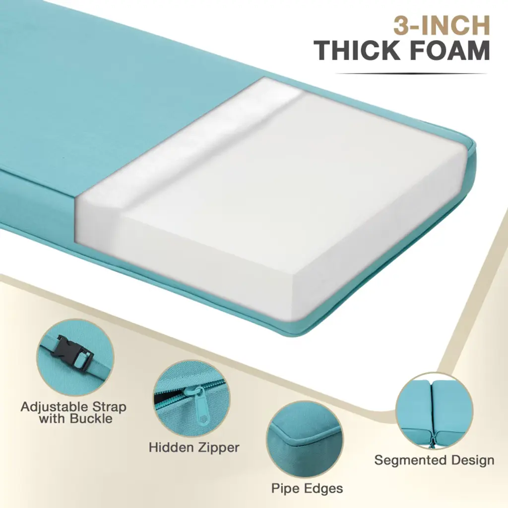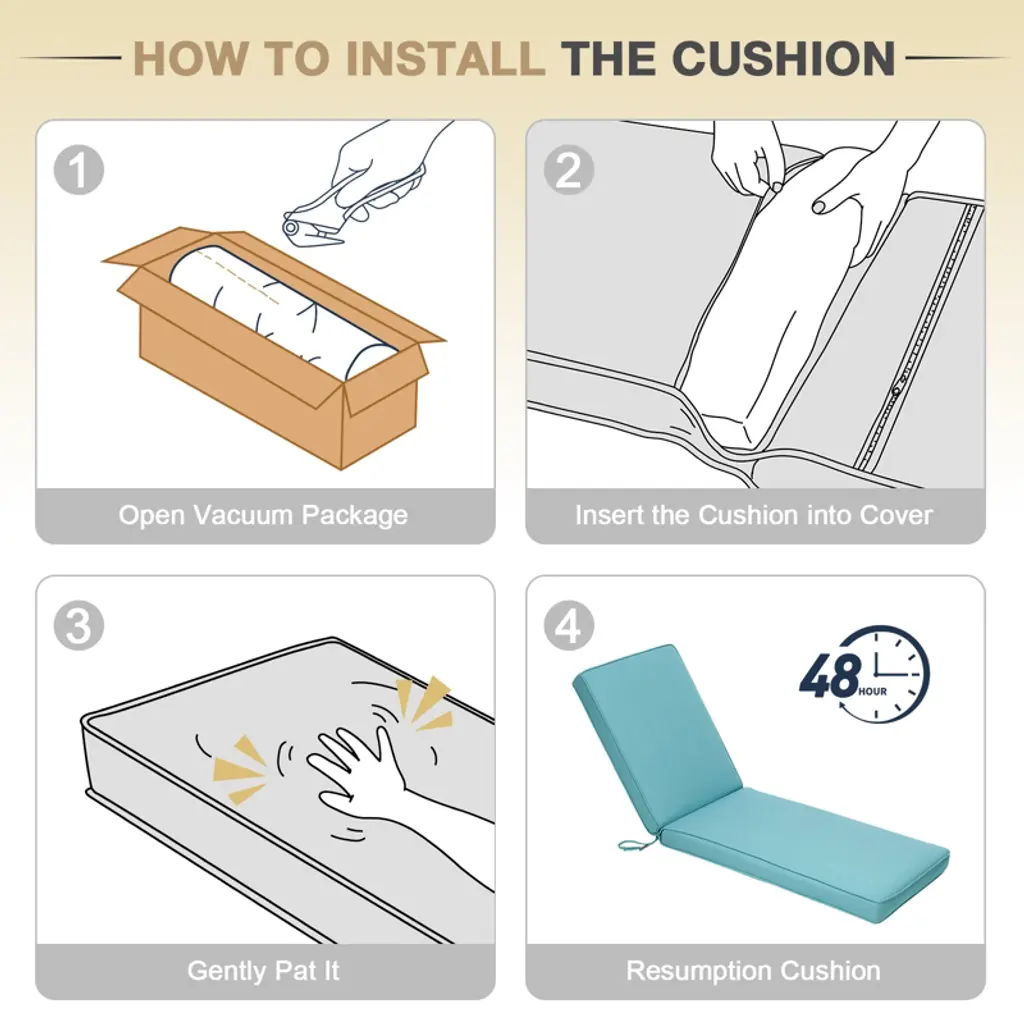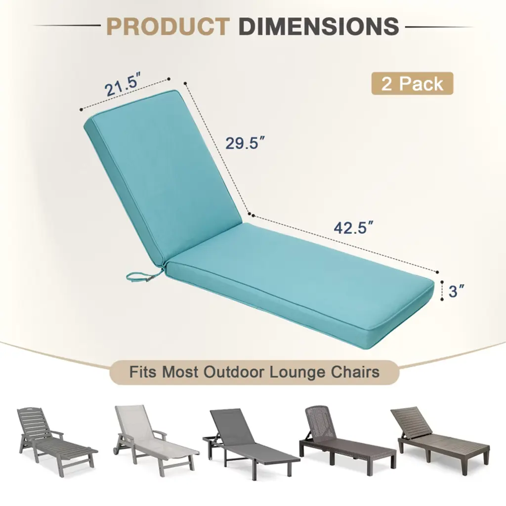 Aoodor Chaise Lounge Cushion 72''L X 21''W X 3"H - Set Of 2. Upgrade your outdoor relaxation with Aoodor Patio Chaise Lounger Cushions. The cushion cover is made of olefin fabric, which is fade resistance, UV protected and water resistant, an ideal cushion for outdoor and indoor use, these water-resistant cushions are perfect for indoor and outdoor use.